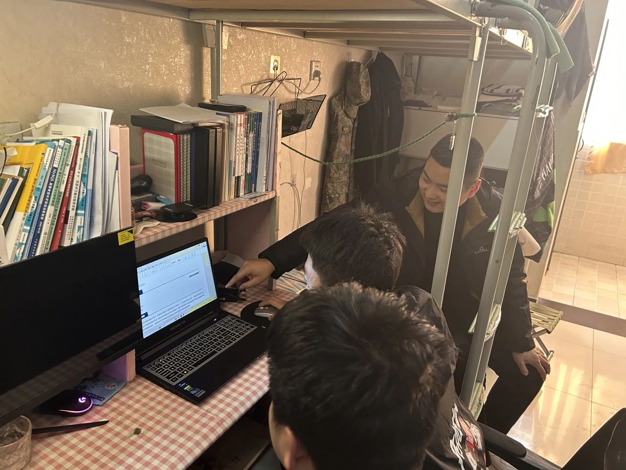 为了更好的构筑“一站式”服务,一支部党员老师聂方山、郑舒方和苗敬老师深入学生宿舍,指导现在面临就业的同学再次完善个人简历,为同学们耐心的讲解、分析当前就业形式和应征入伍的各项政策,引导同学们强化就业意识、树立正确就业观,提升就业能力。并且要踊跃参加招聘会,积极向用人单位展示自我,主动出击。