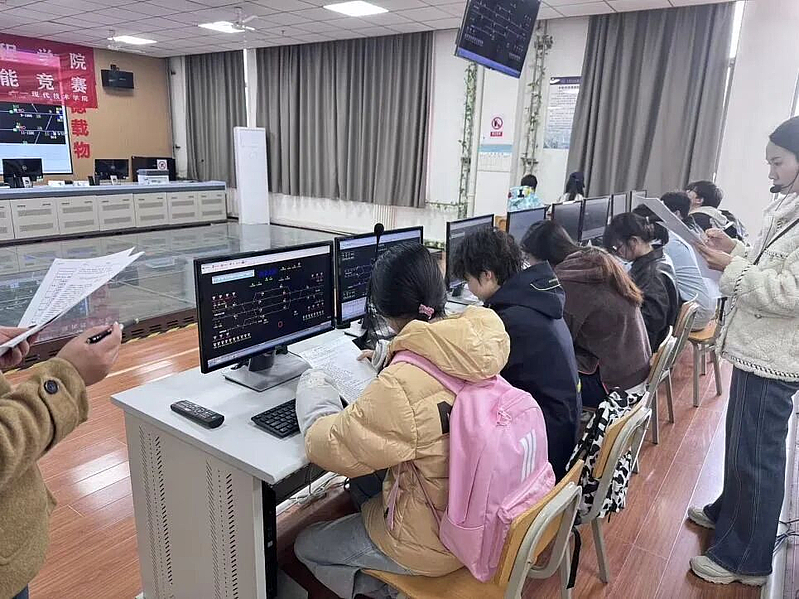 本次竞赛以“以赛促学、以赛促教、以赛促改、以赛促练”为核心,紧密贴合铁路行业岗位标准与实际用人需求,采用“理论+实操”双轨考核模式,全方位检验学生专业综合素养。理论知识考核环节,聚焦铁路行车组织规范、信号设备基础原理、接发列车作业标准等核心专业知识,全面考察选手对理论知识的理解深度与掌握熟练度;实际操作环节高度还原真实铁路行车作业场景,要求参赛选手在规定时限内,规范完成信号开放、进路排列、车机联控等接发列车全流程操作,重点考验选手的实操规范性、流程把控力与突发情况应急处置能力,实现了专业知识与岗位实操的无缝衔接。