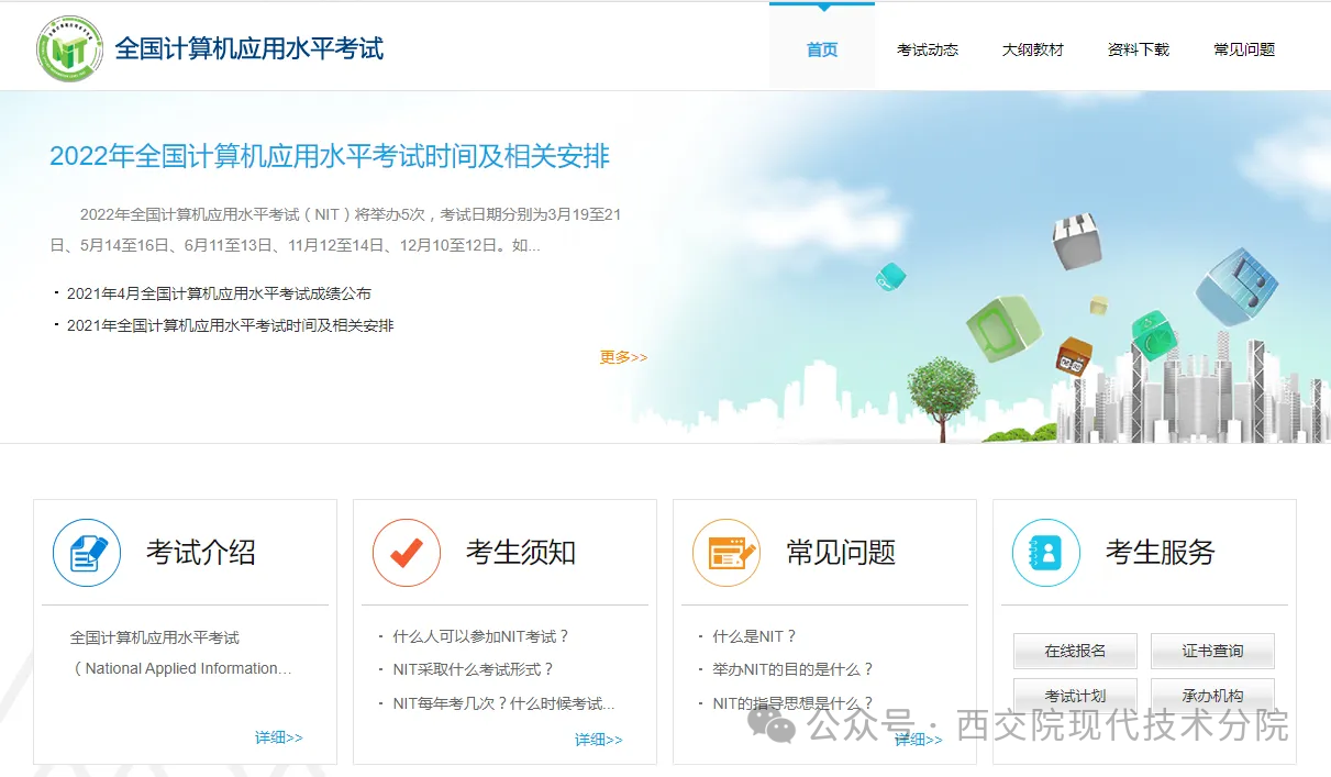 2024年上半年全国计算机应用水平考试(以下简称NIT)将于3月30日至4月1日进行,报名工作即将开始,现将报名事宜公告如下: