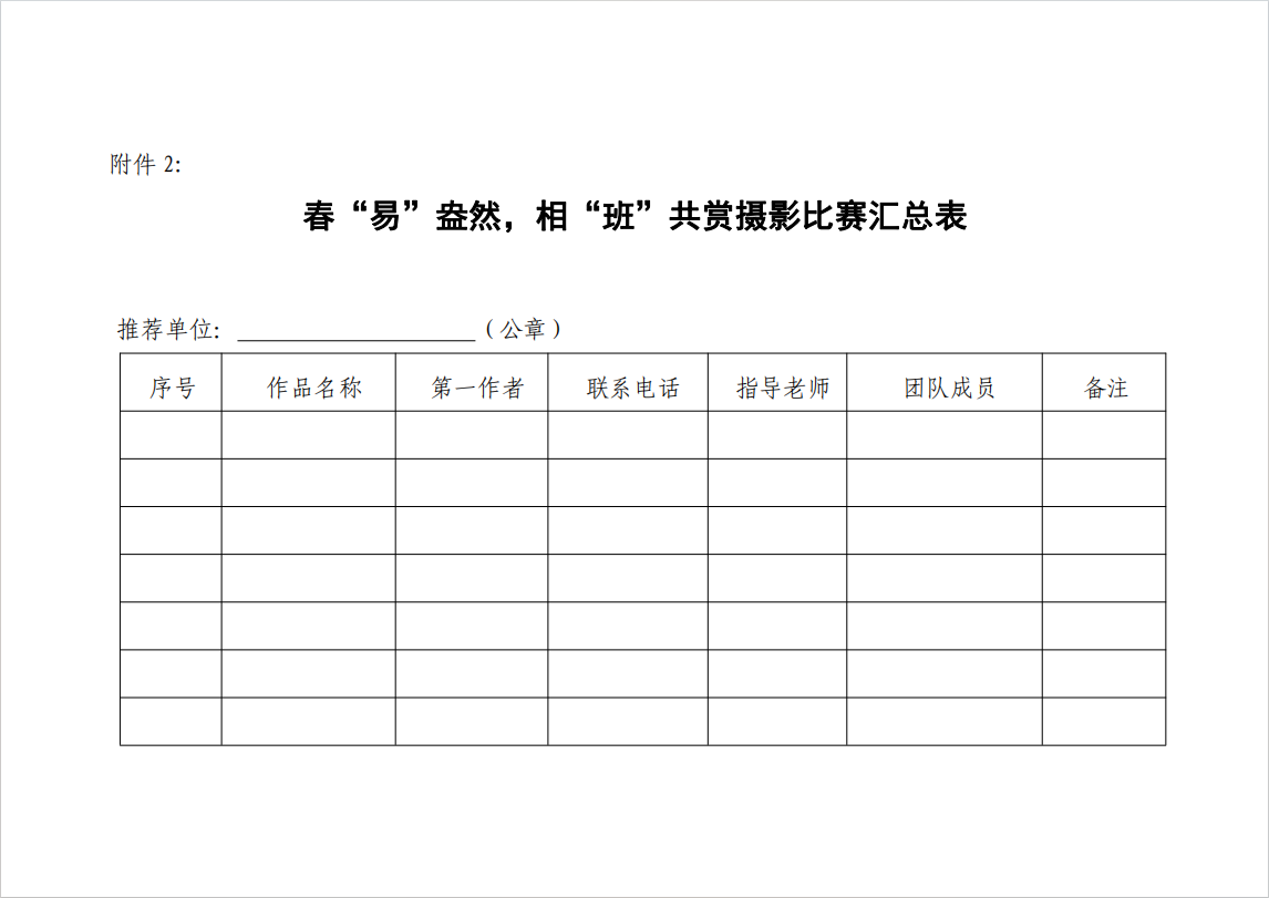 附件2:春“易”盎然,相“班”共赏摄影比赛汇总表