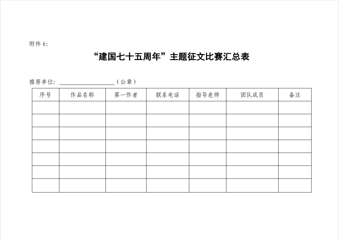 附件6:“建国七十五周年”主题征文比赛汇总表