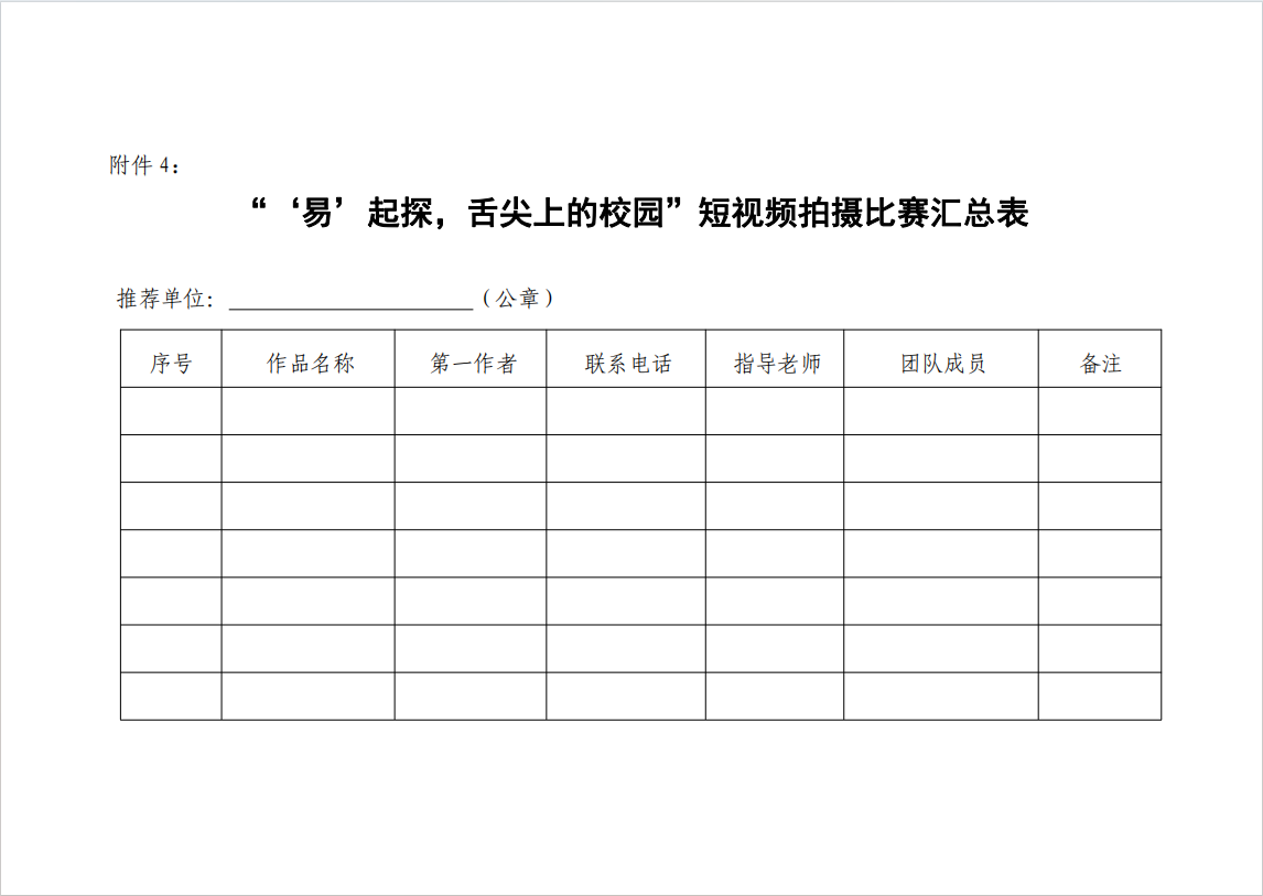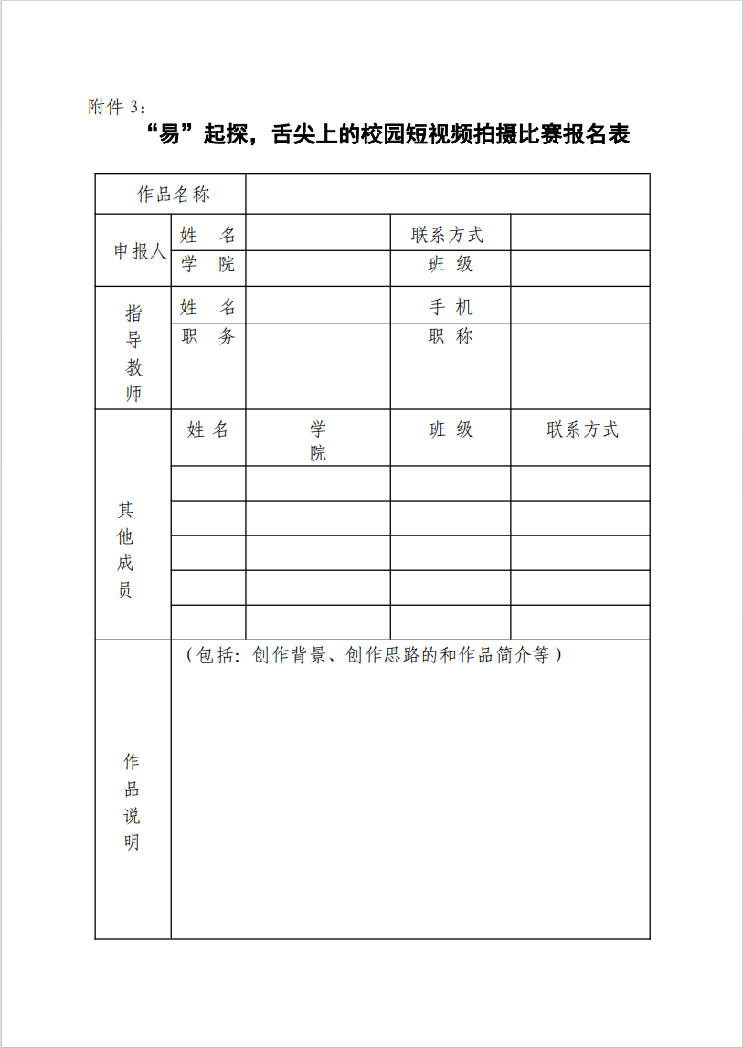 附件3:“易”起探,舌尖上的校园短视频比赛报名表