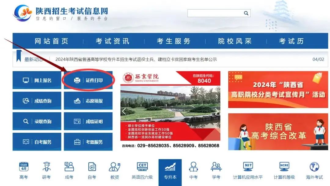 即日起,考生可登录陕西招生考试信息网(http://www.sneac.com/)或陕西省教育考试院网站(http://www.sneea.cn/),进入“陕西省普通高等学校专升本报名系统”自行下载并打印准考证。
