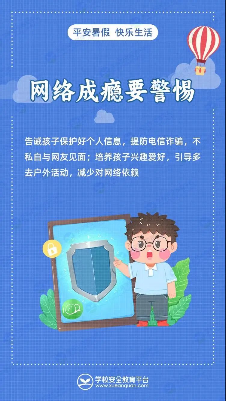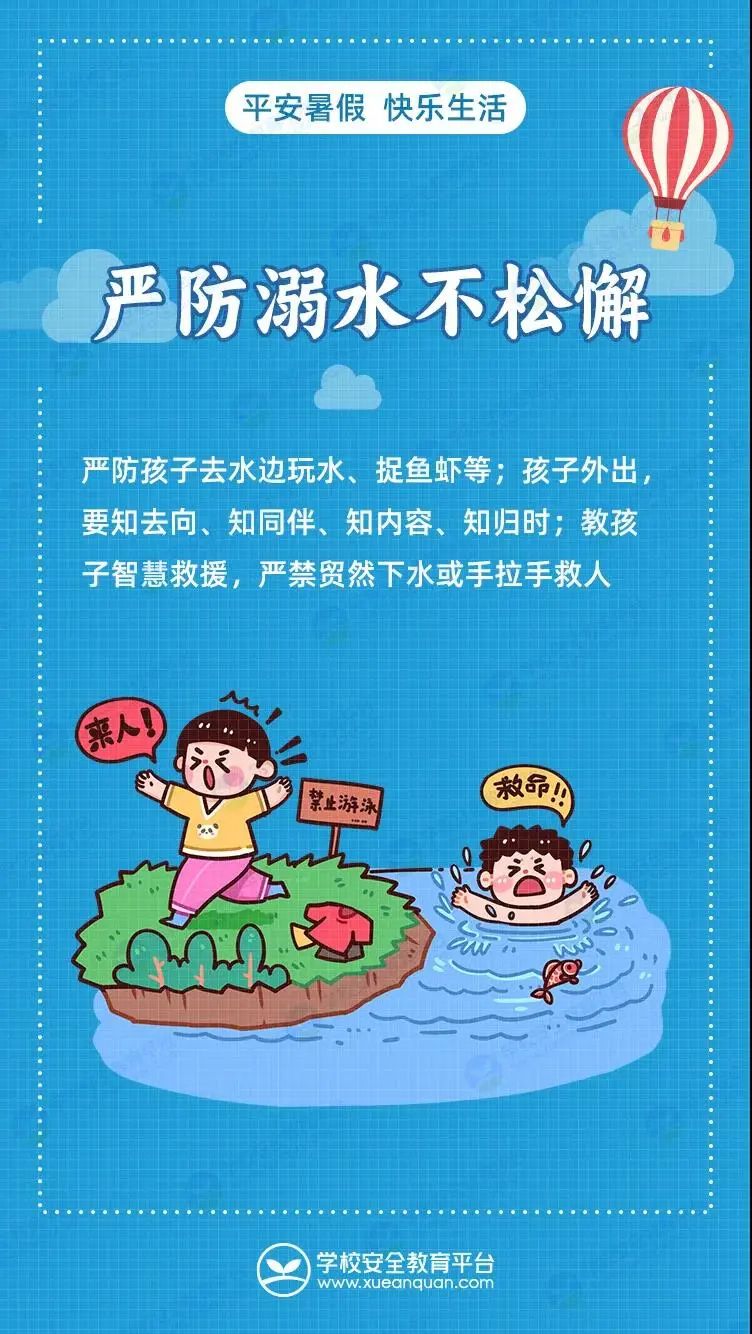 安全是快乐的前提,是孩子们度过愉快假期的基石。希望广大家长朋友,在孩子放暑假期间,务必要提高警惕,不断加强孩子的安全教育和监管,让平安伴随孩子们的暑假生活。