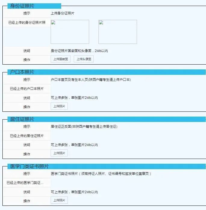 ②陕西户籍考生须上传户口簿照片;非陕西户籍考生上传居住证正、反面照片,须按照报名点要求进行现场资格审核。