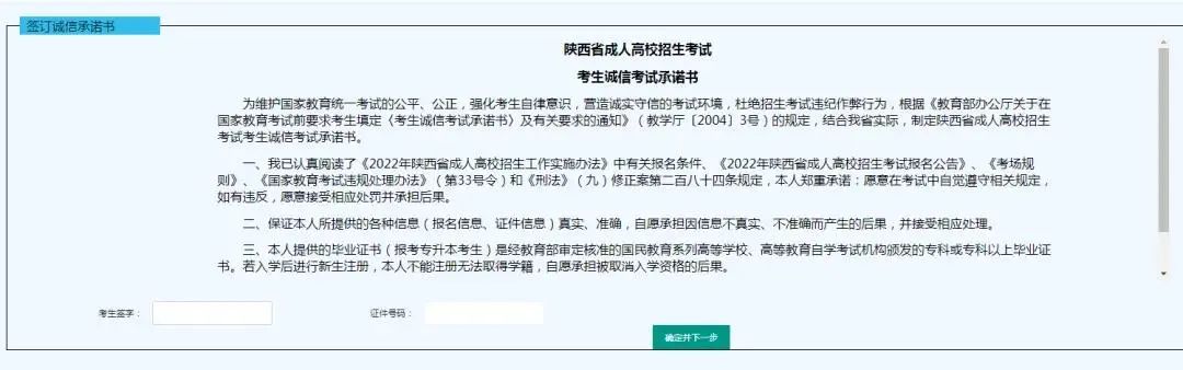 签订诚信承诺书后,等待各报名点应对考生报名资格进行网上审核,考生进行网上信息确认。审核未通过的考生,可根据系统提示重新修改报名信息、上传相应资料,或根据报名点要求携带本人身份证和相关资料到现场审核。审核通过的考生,系统生成《考生报名信息确认表》,考生信息核对无误、确认提交后不能修改,网上审核和信息确认环节完成。