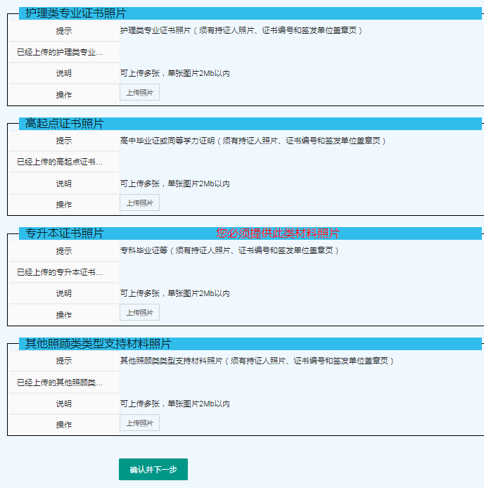 考生根据所报考层次类别,上传相应资料,等待网上审核。