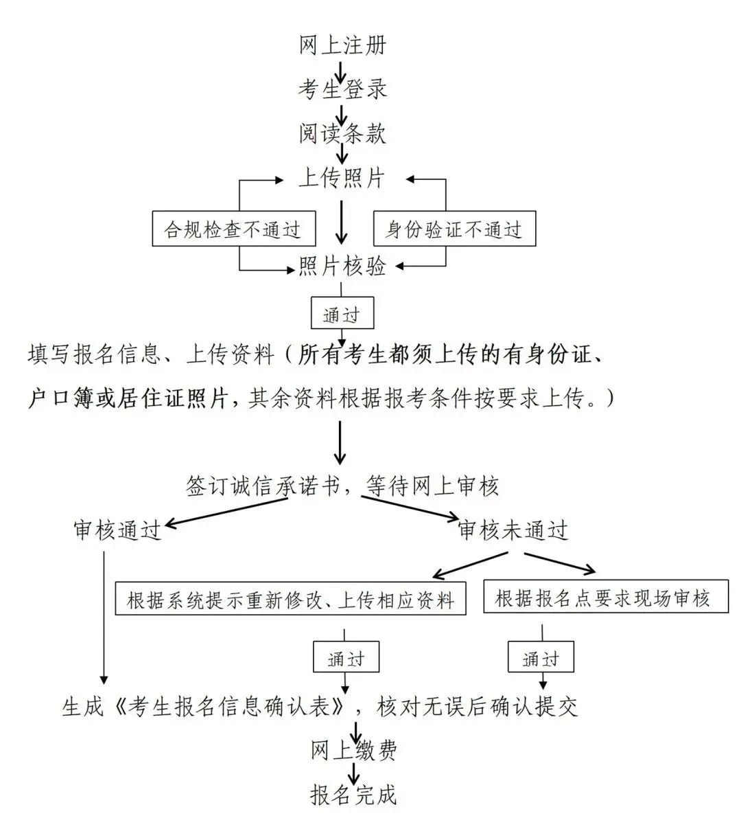 报名步骤分别为:网上注册及照片验证、填写信息及上传资料、信息审核及确认、网上缴费等,具体时间及内容如下: