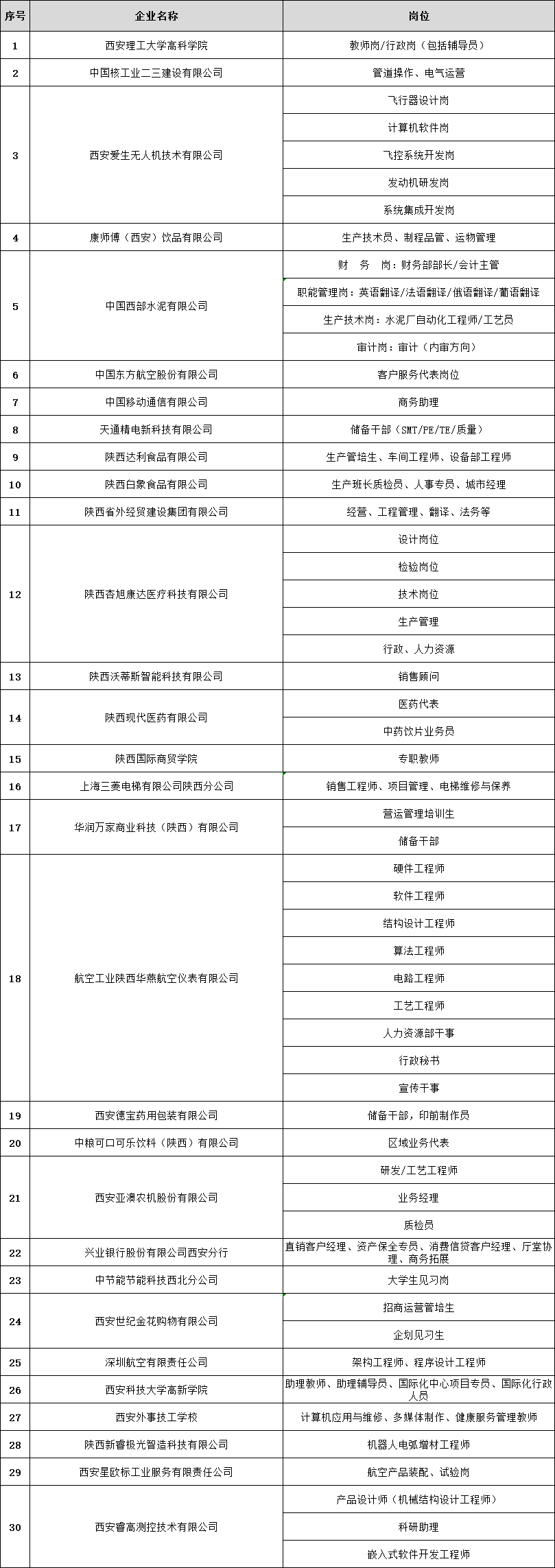 部分重点企业名单及岗位: