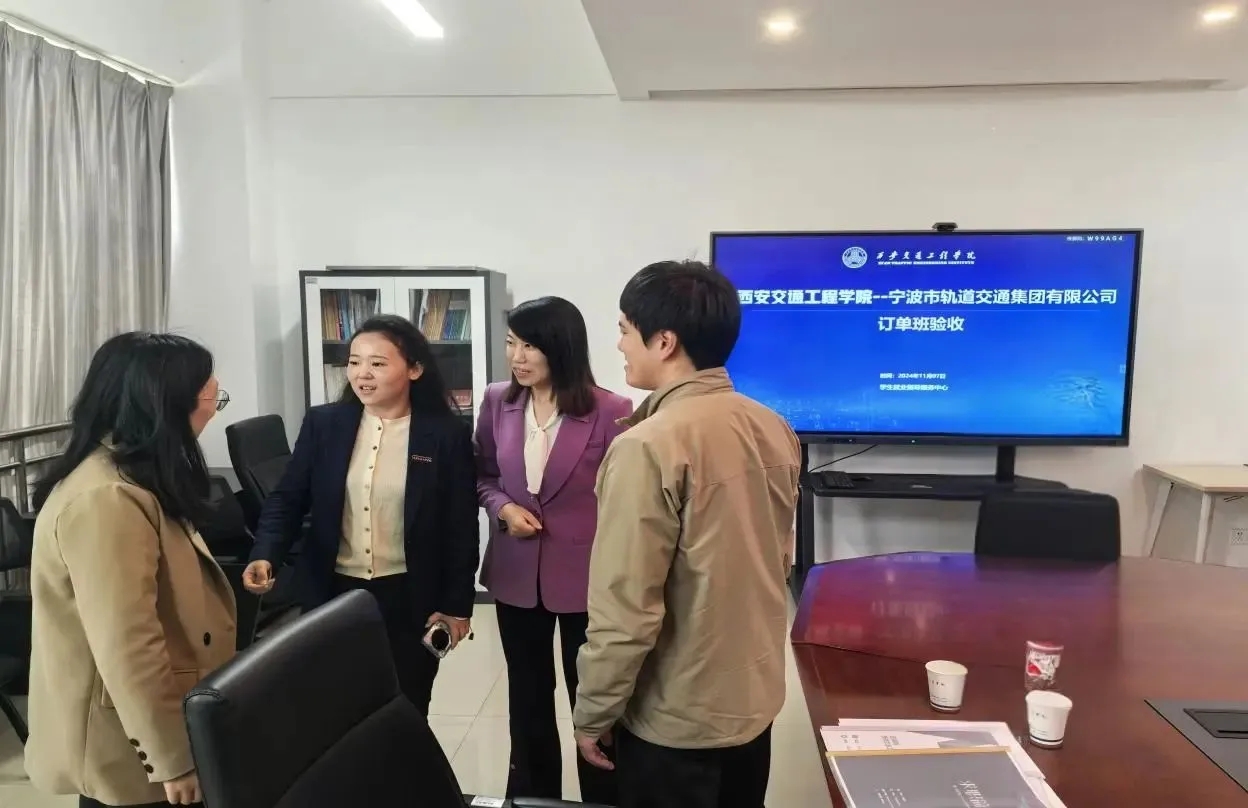 我校理事张慧、副校长徐炜与宁波轨道团队就人才培养、订单班验收等议题进行了深入交流。企业代表对我校在人才培养方面所做出的贡献给予了高度评价,并指出通过订单培养的模式,能够按照企业的需求定制培养计划,企业得以提前介入学生的学习过程,尽早植入岗位所需知识,确保学生所学技能与岗位需求实现无缝对接,为企业选拔专业人才奠定了坚实基础。