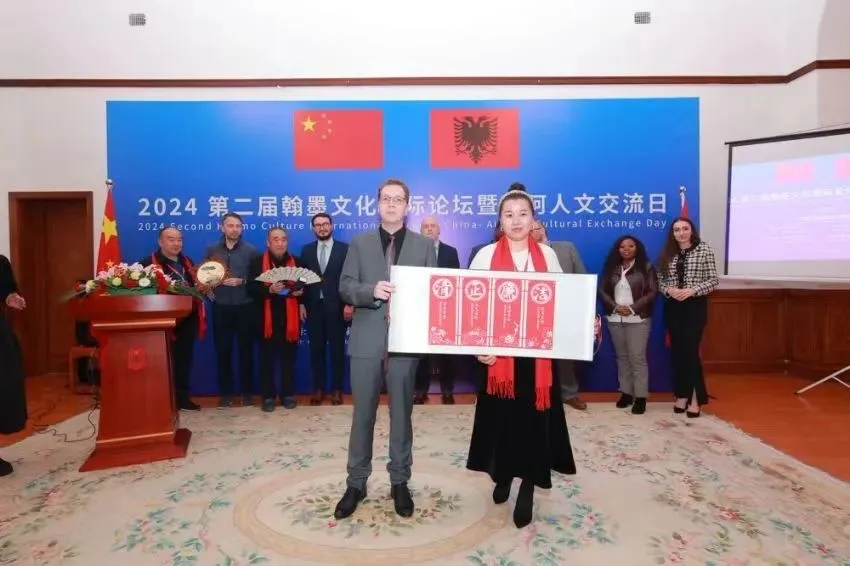 在此次翰墨文化国际论坛暨中阿人文交流日上,丁丽梅的剪纸作品《清正廉洁》被选定为中国国礼艺术品,赠予阿尔巴尼亚大使。同时,国礼委员会授予她“中华国礼艺术家”荣誉称号。该作品以中国传统剪纸艺术为载体,巧妙融合了中华文化的精髓与现代审美,展现了丁丽梅深厚的艺术功底和独特的创作理念,不仅传递了中国传统文化中的廉洁思想,更体现了中国艺术家对国际友好交流的真诚愿望。