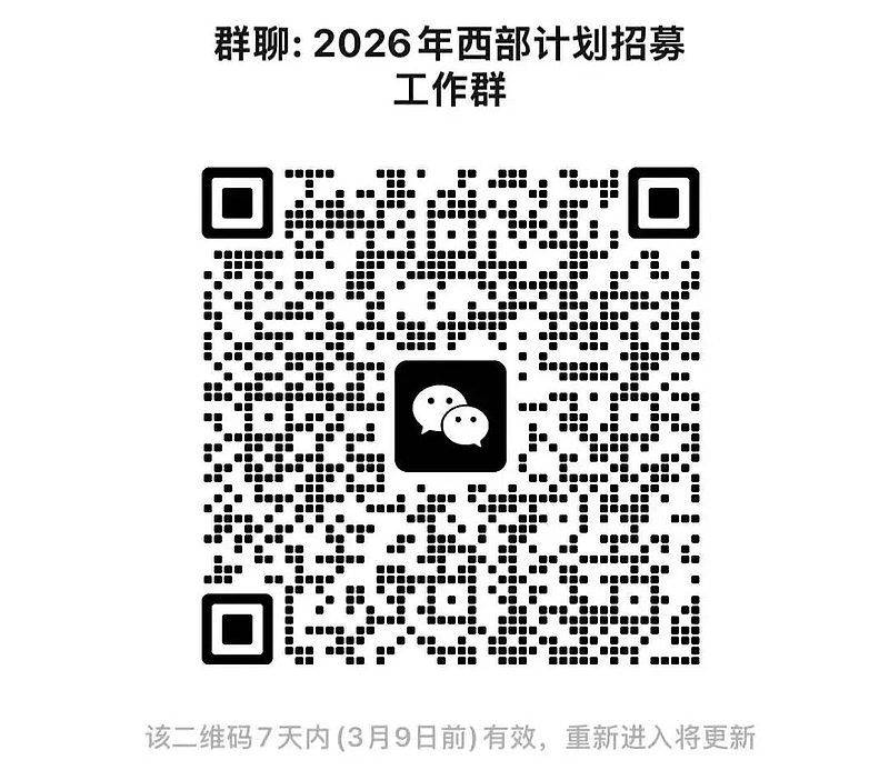 3月1日起至5月10日,2026年普通高等学校应届毕业生或在读研究生,可登录西部计划官方网站(https://xibu.youth.cn)或通过“西部志愿汇”微信公众号(菜单栏中的“我要报名”),在西部计划信息系统(https://west.youth.cn/login)中完成注册报名。