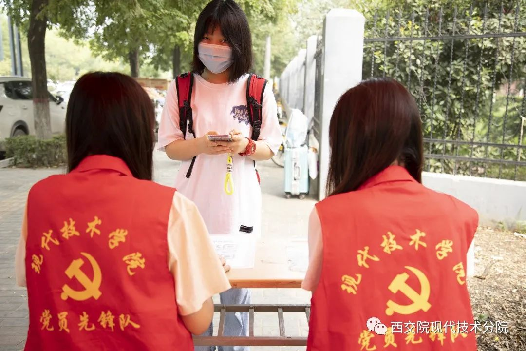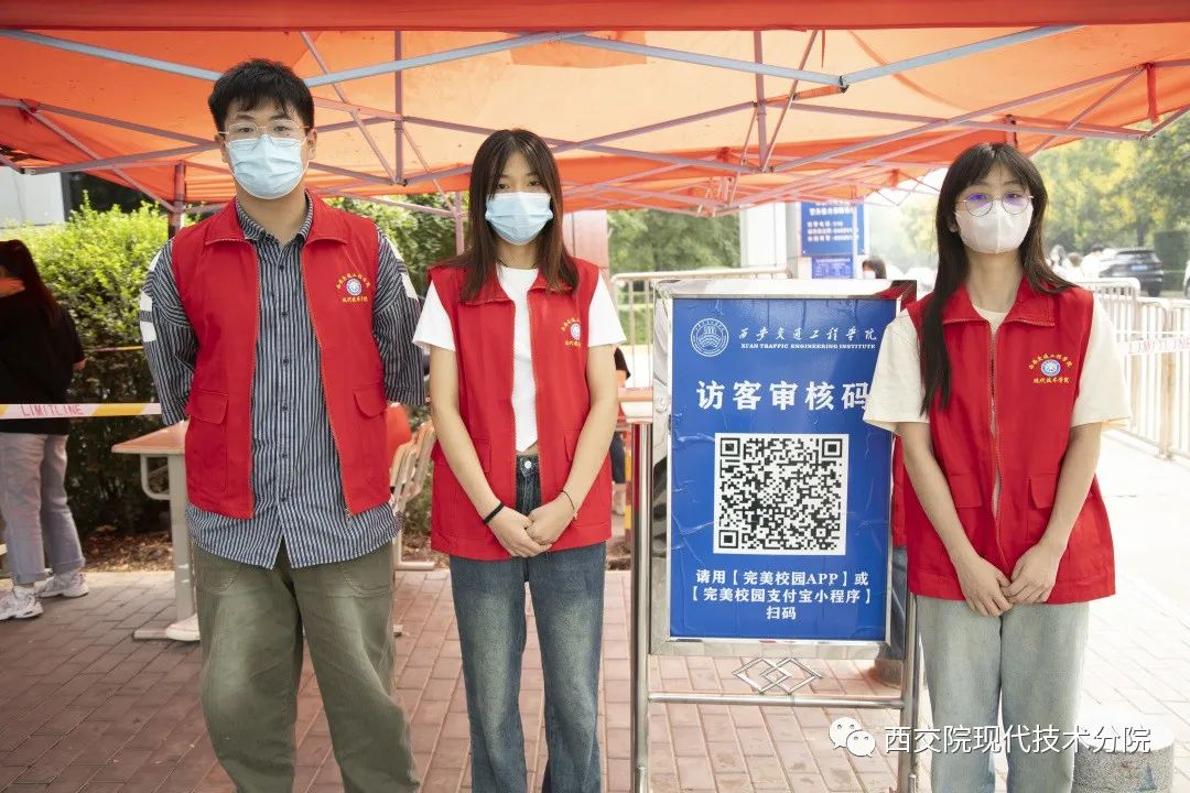“志愿者们身穿红色马甲,维护秩序、测量体温、查看健康材料,积极配合校园防疫工作。在气温日渐攀升的情况下,他们仍然以激情面对工作,认真完成志愿工作,为同学服务。