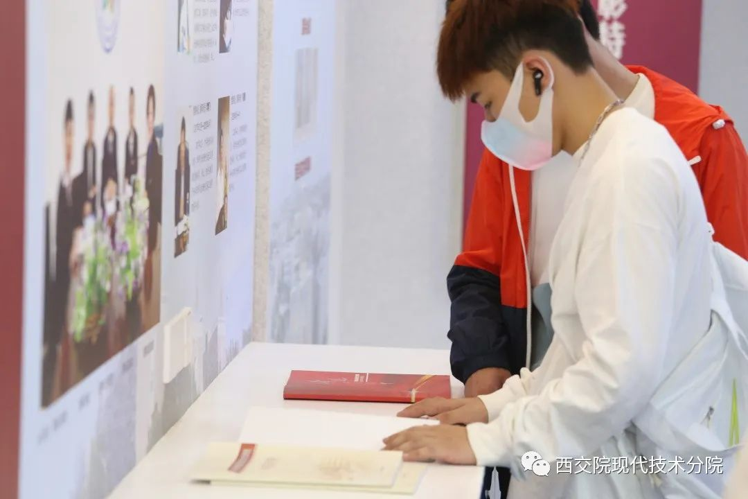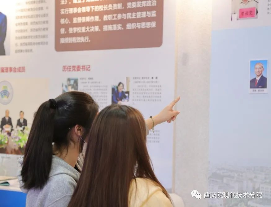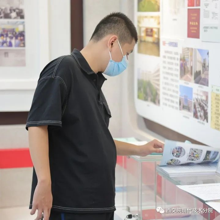 活动伊始,同学们佩戴口罩,排队等候,井然有序地走进校史馆。古铜色的浮雕在灯光的照耀下格外光彩照人,没错,此时此刻交院二十八载的峥嵘岁月在同学们的眼前熠熠生辉,同学们纷纷为之赞叹。参观过程中还有同学拿出手机拍照留念。