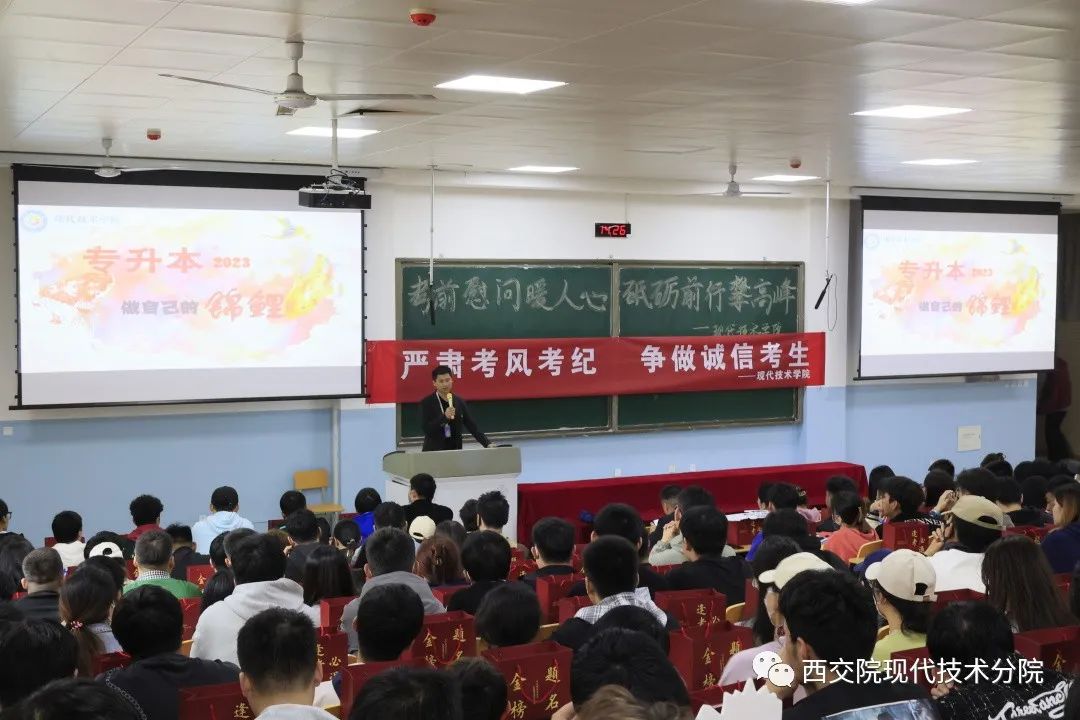 会上,都娟丽院长就专升本考试规则、考试要求、考试安全和注意事项进行了详细解读,要求全体考生严守考风考纪,诚信考试。正确认识违纪舞弊的严重后果,端正考试态度,规范考试行为。学生代表徐小龙同学带领全体考生进行考前宣誓。田宏顺书记重申了诚信考试和考试安全的重要性,并从考前心态调整、生活作息等方面给大家作了温馨提示,考前要调整好情绪、合理膳食、放松心态,以轻松、乐观的心态应对考试;以最大的努力、抱最小的期望、留最少的遗憾的心境去面对考试。