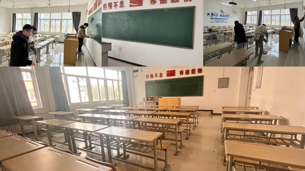 全体师生齐上阵,环境清洁靠大家。在学院党委书记田宏顺的带领下,充分动员学管队伍力量参与其中,学生们积极响应号召,辅导员带头行动,对学院办公场所和公共区域进行全面清扫。进一步增强学院学生的卫生健康意识,促使同学们将爱国爱校情怀融入一言一行之中。