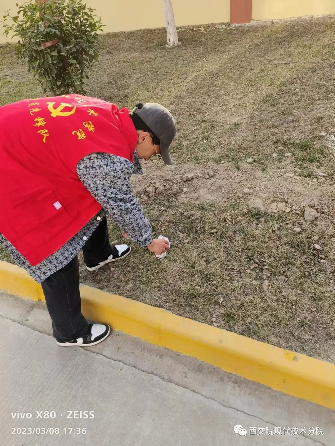 活动过程中志愿者们准时在六号教学楼下集合,井然有序的开展打扫工作。活动全程中志愿者们秉持着“校园是我家,服务为大家”的态度积极配合工作,有的俯拾起地面的塑料袋;有的清扫墙角堆积的枯枝落叶;还有的搜寻着花园草丛中的有色垃圾。他们热情高涨,干劲十足,对每个小角落进行大搜索,使我们的校园焕然一新。