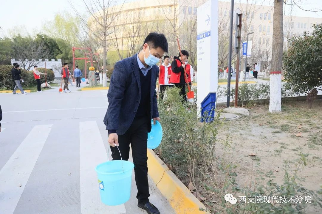 在学院党委书记兼副院长田宏顺的带领下志愿者们有序分配好工具之后,开始行动,男生负责取水、松土,女生负责浇水,大家分工明确,互助合作,认真清理了树丛中的落叶和垃圾,并对宿舍楼附近的百余棵树木和绿植进行了浇灌。师生们秉持着不怕苦不怕累,甘于奉献,认真细致的态度,为建设美丽校园挥洒着自己的汗水,齐心协力完成了志愿活动,不仅增强了志愿者们的凝聚力,也体现出了志愿者们为建设美丽交院贡献自己一份力量的决心。