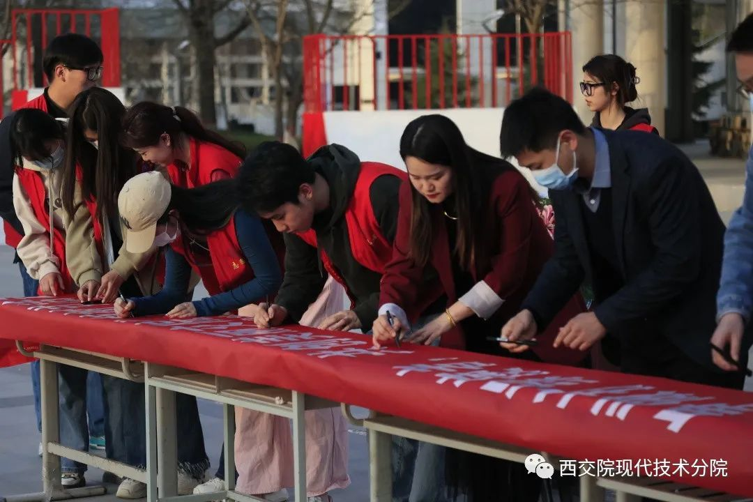 活动中,志愿者代表程乾钦同学宣读了《“学习雷锋榜样,汇聚青春力量!”致全院团员青年倡议书》,倡议广大志愿者要学习雷锋精神、弘扬志愿服务、保护生态环境、共建美丽交院,争做雷锋精神的宣传者和践行者。紧接着,领导老师及志愿者们依次在横幅上签上自己的名字,展示出了志愿者们积极响应志愿服务,践行雷锋精神的风采。