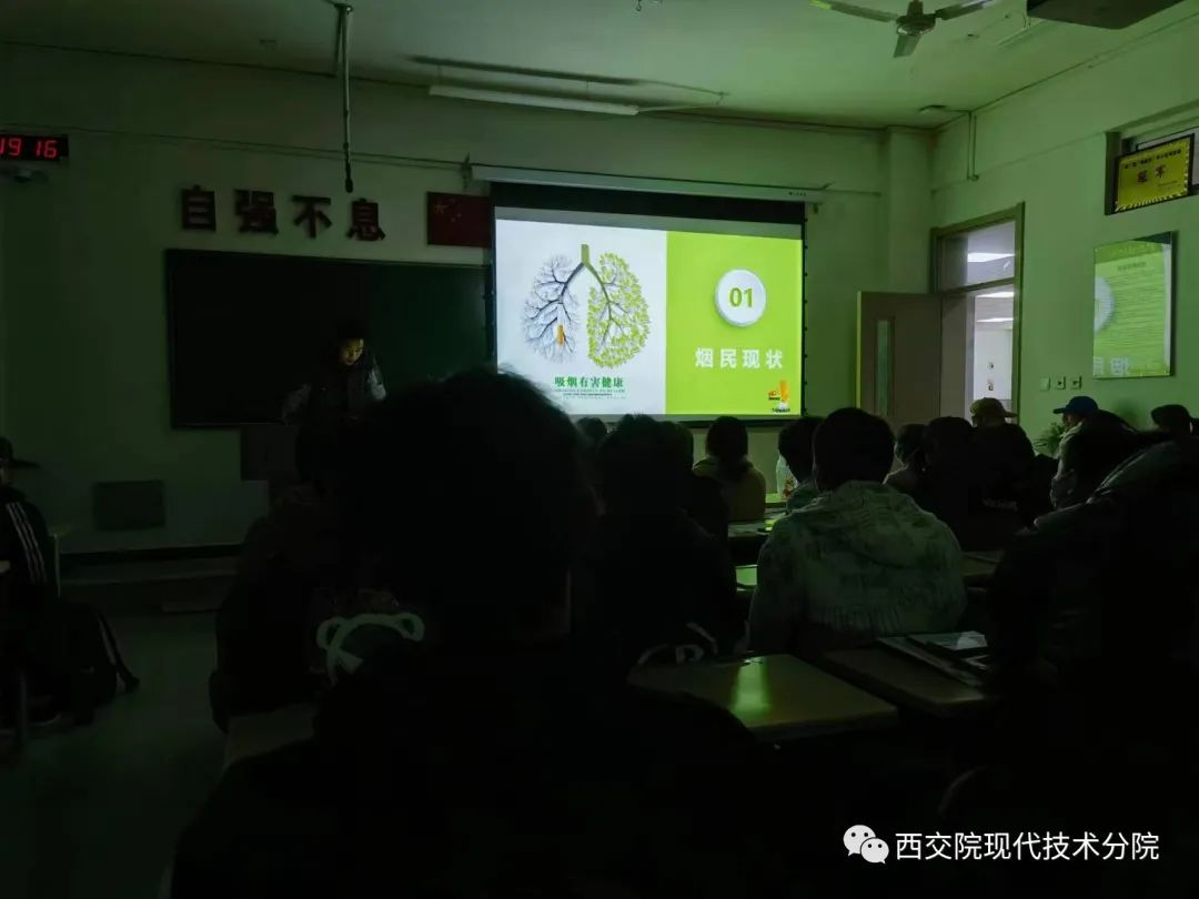 各班团支书,在各班教室开展,伟德国际victor·1946源自全体学生参与。禁烟班会由各班团支书主持进行,禁烟班会由各班团支书主持,起到带头作用,进一步调动班级同学们的积极性;团支书起带头作用,积极调动班级同学们的积极性;各班级禁烟宣传内容充实,突出对禁烟的重视。通过此次班会提高学生的禁烟意识,让同学们从内心清醒地认识到,吸烟有害健康,吸烟是慢性自杀的行为。同学们畅所欲言,积极发表自己的见解,通过具体的人物事例,科学的数据向同学们讲述烟草的危害,以及吸烟对自身和身边的人带来的伤害,呼吁大家共创无烟校园。