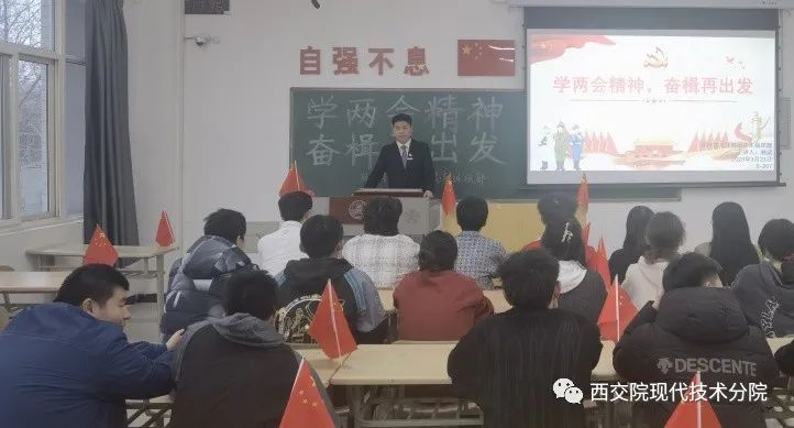随后通过林成同学对两会热词的解读,让同学们更加意识到了我们青年一辈,是时代发展的重要力量,是国家发展的重要支撑,是社会进步的重要助力。身为新时代青年的我们受到了国家的保护与培养,与此同时我们也理应为国家与和社会做贡献。立志做一名有理想、肯奋斗的青年,做时代的感召者,社会的前行者。