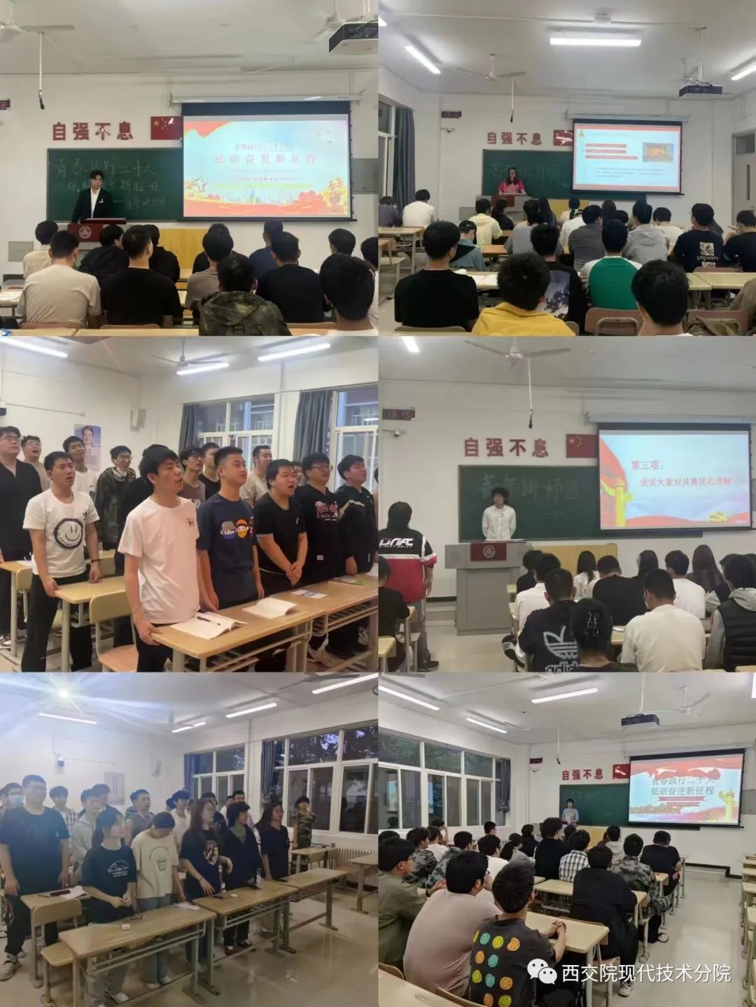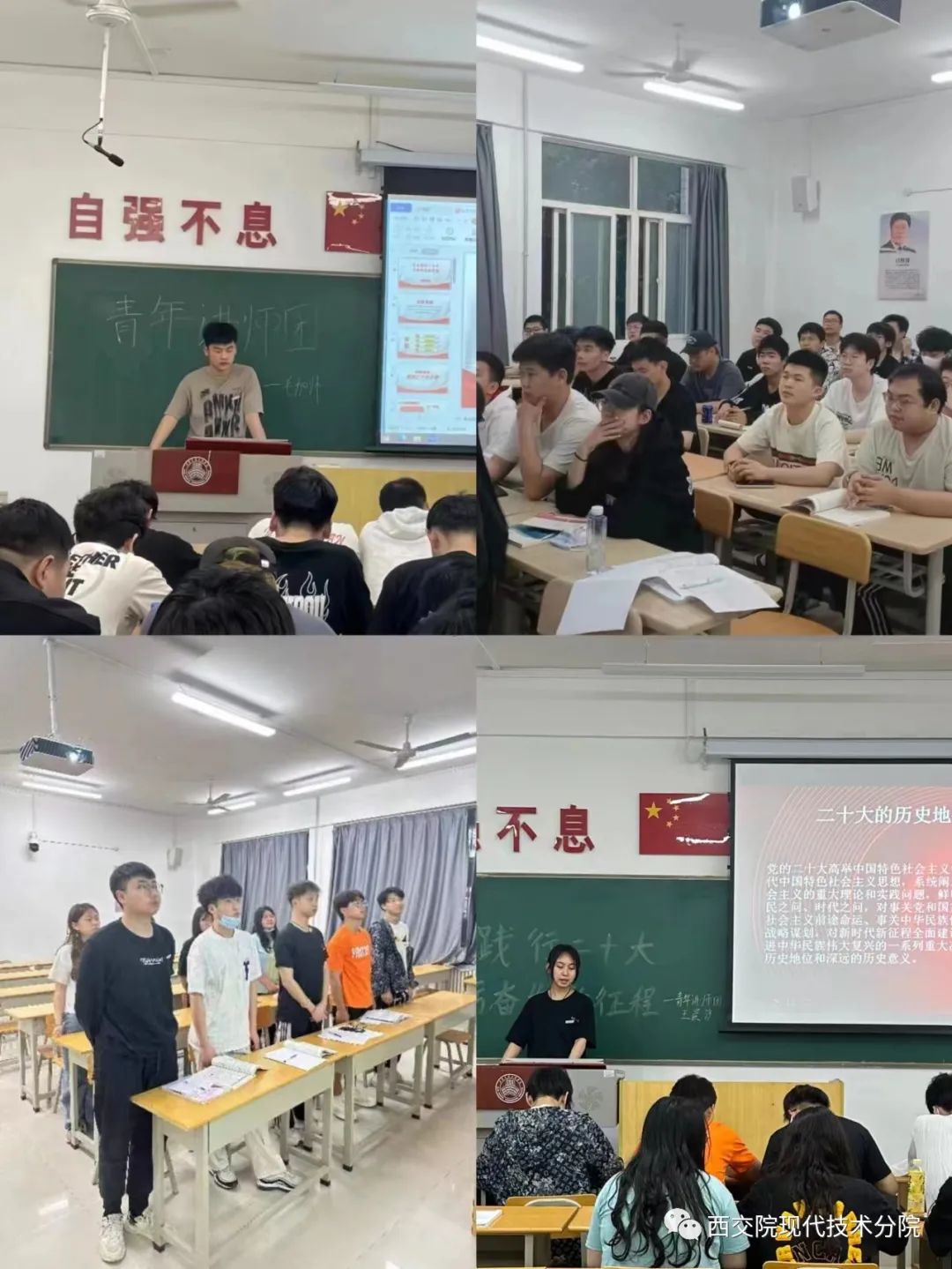 党的二十大是在全党全国各族人民迈上全面建设社会主义现代化国家新征程、向第二个百年奋斗目标进军的关键时刻召开的一次十分重要的大会。为深入学习贯彻党的二十大精神,引导我院学子坚定信念跟党走、团结奋斗新征程,在4月17日至19日,我院青年讲师团六位成员利用晚自习时间在各班开展“青春献礼二十大,砥砺奋进新时代”主题团课。