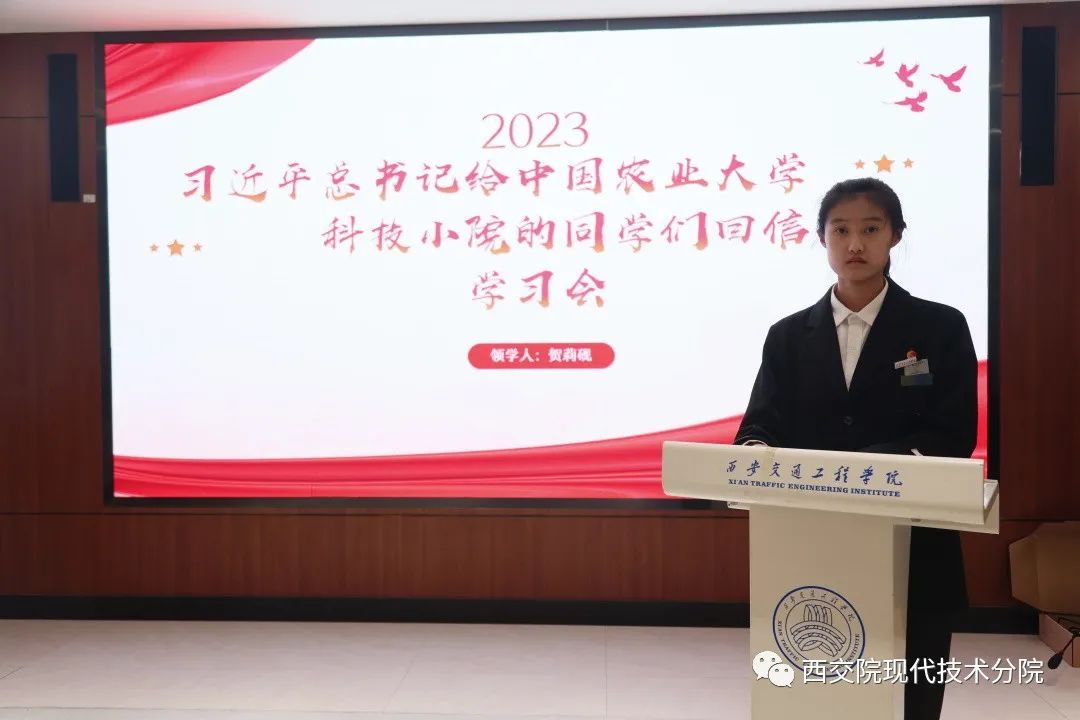 会上,贺莉砚同学先是带领全体人员集体学习了习近平总书记给中国农业大学科技小院同学们的回信内容并向同学们介绍了会议精神。习近平总书记常以书信方式同青年交流,充分体现了党和国家对广大青年的重视与关怀。这次回信中,习近平总书记再次向全国广大青年提出殷切期望:要厚植爱农情怀,练就兴农本领,在乡村振兴的大舞台上建功立业,为加快推进农业农村现代化、全面建设社会主义现代化国家贡献青春力量。