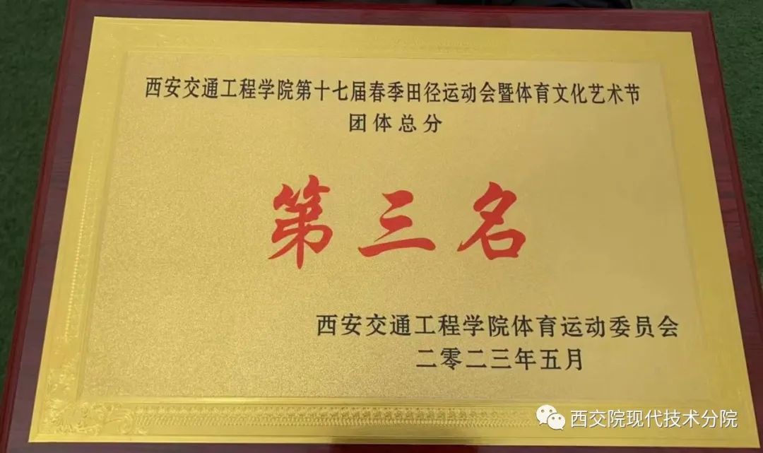 荣获第十七届春季田径运动会团体总分第三名。该院师生积极备战,踊跃参与。运动健儿在绿茵场上团结协作,奋力拼搏,挑战自我,表现出十分出色的竞技水平;啦啦队员热情洋溢,青春飞扬,呐喊之声响彻赛场;工作人员组织周密,保障到位,确保各赛点服务工作井然有序。在该院师生的共同努力下,充分展示出学院力争上游,顽强拼搏,迎难而上的精神风貌,取得了运动成绩和精神文明双丰收。最终以175分荣获团体总分第三名,男子团体总分第二名及女子团体总分第三名的优异成绩。