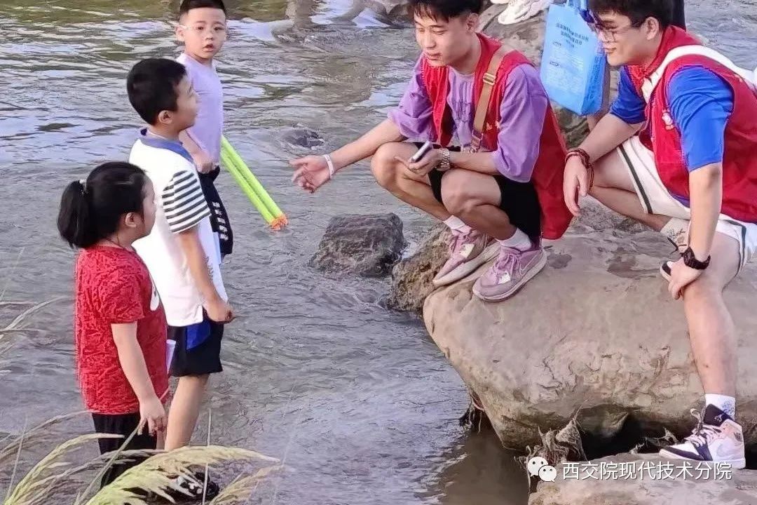 在志愿服务活动过程中,实践队员们分为两队,一队实践队员们叮嘱家长要看管好小孩,向群众宣传安全注意事项,严防溺水、不靠近危险水域;不私自下水;不到无安全员水域游泳等不安全事故的发生;另一队实践队员们身着红色志愿马夹,在绿色环境的映衬下显得格外显眼,增添了一抹鲜活的靓色。实践队员们沿着河道,拉开地毯式垃圾捡拾工作,经过两个多小时的忙碌,纸巾、果皮、塑料袋、烟头等河道垃圾“一扫而尽”,彻底消失在视野里。每一次俯身,每一滴汗水,都是实践队员们守护绿水青山的最佳勋章用实际行动做好生态文明的“践行者”和“推动者”。