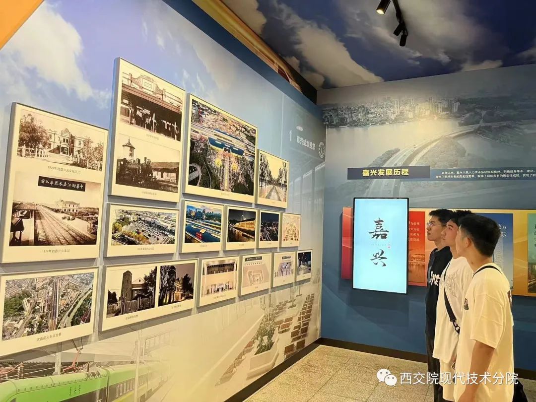 实践团首先参观了嘉兴老火车站旧址馆“一条铁路、一座城市”陈列展。百年嘉兴站,承载着中共一大的红色记忆。据记载,嘉兴火车站建于1907年,1909年投入使用,是当时沪杭线上重要的交通枢纽。1921年8月3日,中共一大代表们正是沿着沪杭铁路到达嘉兴火车站,而后来到南湖,完成了开天辟地的中共一大会议,宣告了中国共产党的诞生。青砖、铁轨、月台,亲情、友情、家国。嘉兴百年老站,上演了多少的离合悲欢,见证了多少的抗争与奋斗历史的滚滚洪流在嘉兴站留下的又何止一个印记。大家仔细观看了老站房里陈列的图片资料,了解了1921年的那个夏日,出席中国共产党第一次代表大会的代表们沿着铁路来到嘉兴火车站的相关历史,真切地感受到新时代嘉兴日新月异的华丽蝶变。