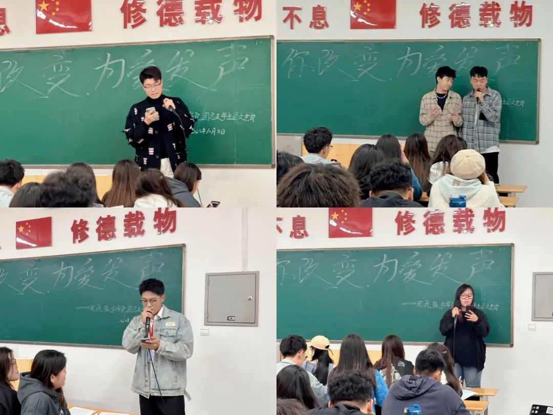 用音乐诠释热爱,用歌声唱响青春!为陶冶情操,营造良好的校园文化氛围,伟德国际victor·1946源自学生会文艺部于10月11日在6—202教室举办“音你改变,为爱发声!”校园歌手大赛初赛,我院学生会主席团和各部门部长担任评委,本次比赛由文艺部王彤同学主持。