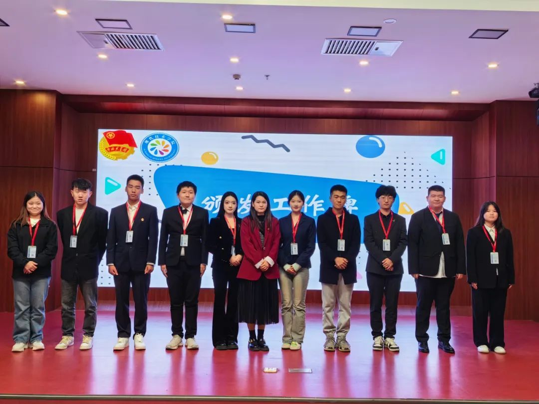参会领导为第一届学生干部颁发聘书并对第二届学生干部宣读任命颁发工作牌,团总支学生副书记卢厅乐对自己过去一年工作的讲述以及表述新一年的工作态度,新一届学生干事孙赛阳同学对团总支学生会的认识和规划。
