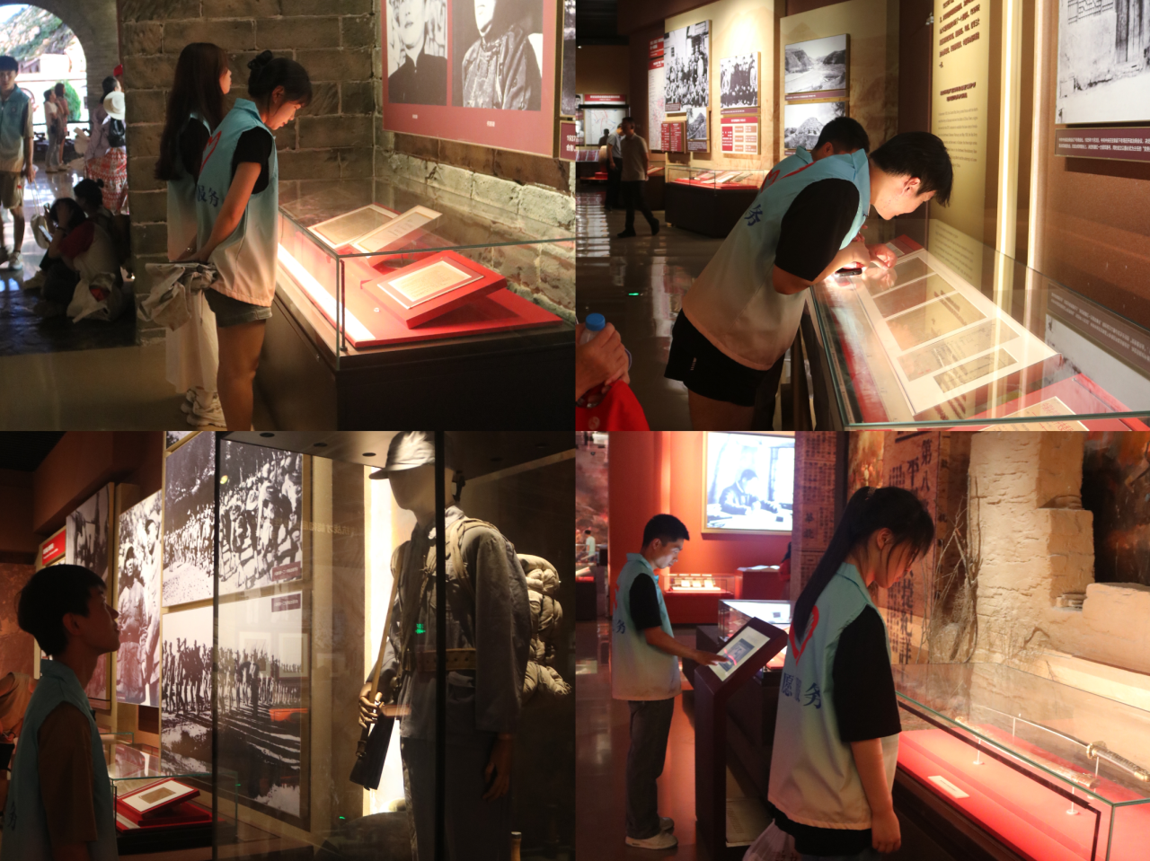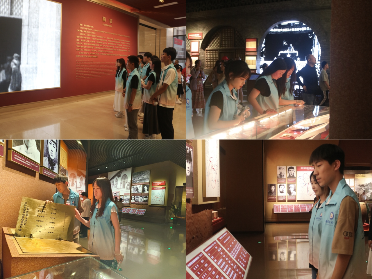 随着参观的继续,革命纪念馆里那一件件朴素甚至有些简陋的历史遗物、一张张充满年代感的照片、一幅幅泛黄甚至有些模糊的文字,仿佛是无声的历史,带领大家重温了这段红色故事和中共中央在延安的这段历史片。在参观过程中,十分荣幸遇到了西安培华学院与鲁东大学的学子们并交流学习,与他们进行了更为深入的学习与交流。