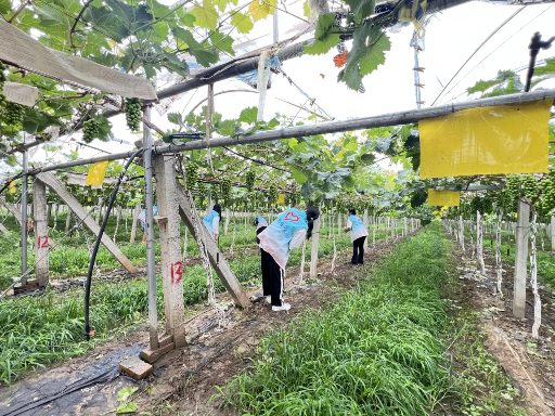 在详细了解葡萄的生长情况后,在果农们的悉心指导下同学们亲身参与葡萄树的修剪、葡萄基地的除草等农事活动,深刻体会到农业生产的艰辛和不易。经过一天的努力,大棚中的每一株葡萄树得到了精心修剪,丛生的杂草也被及时铲除。同学们的努力得到了农民们的高度认可和赞扬,不仅在实践中帮助了农民,也收获了宝贵的经验和成就感。通过此次活动,落实因地制宜大力发展特色产业,拓宽农民增收致富渠道,引导和帮助广大青年学生厚植爱农情怀,练就兴农本领。