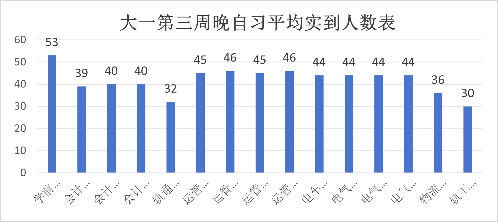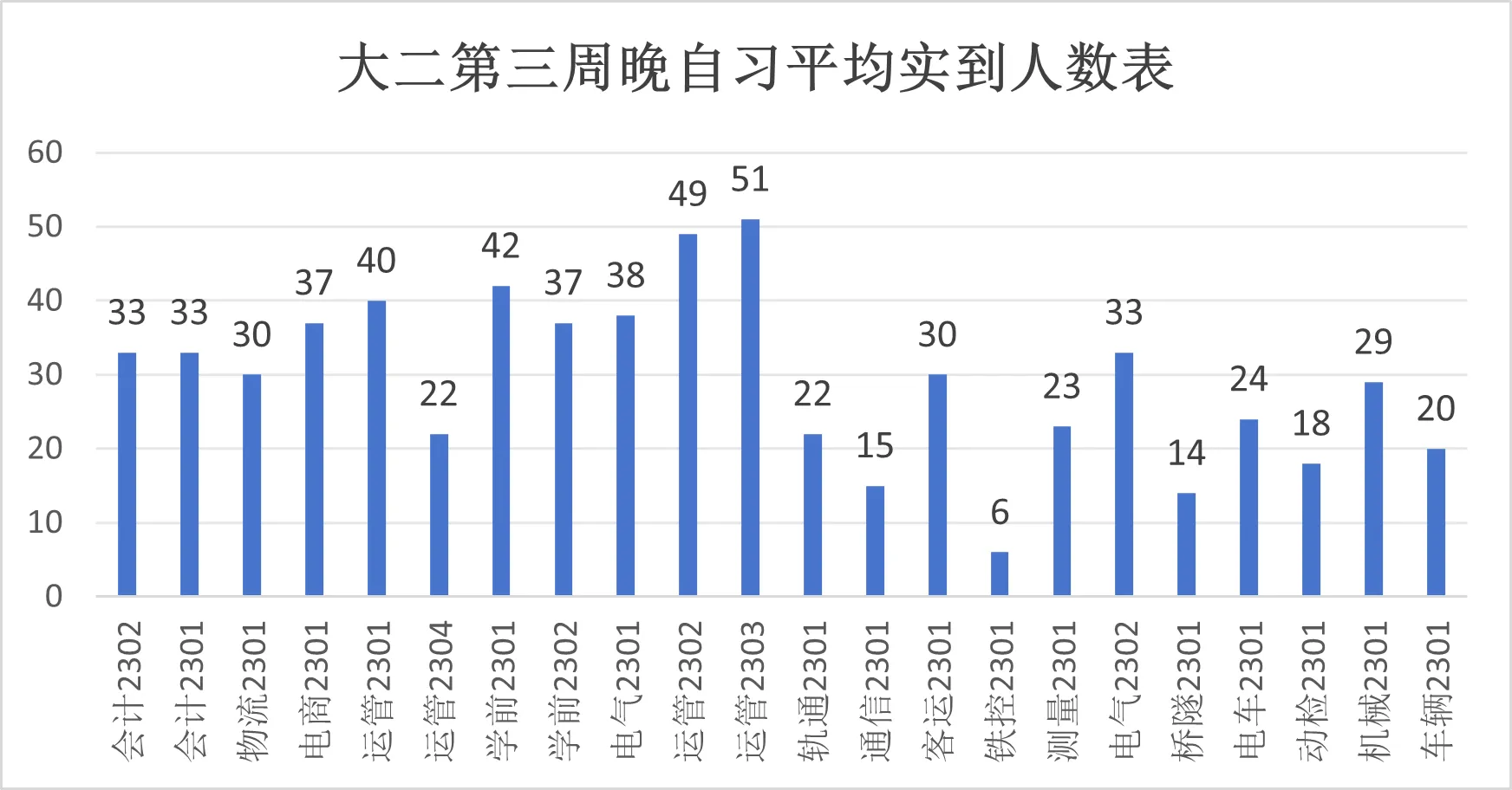 大一第三周晚自习平均实到人数表