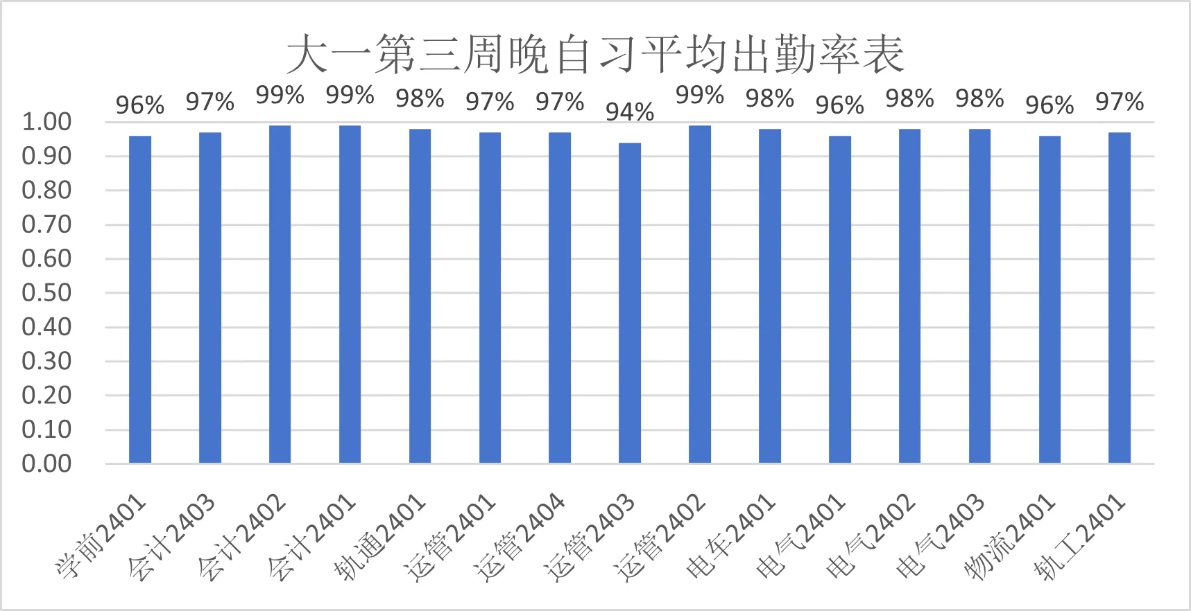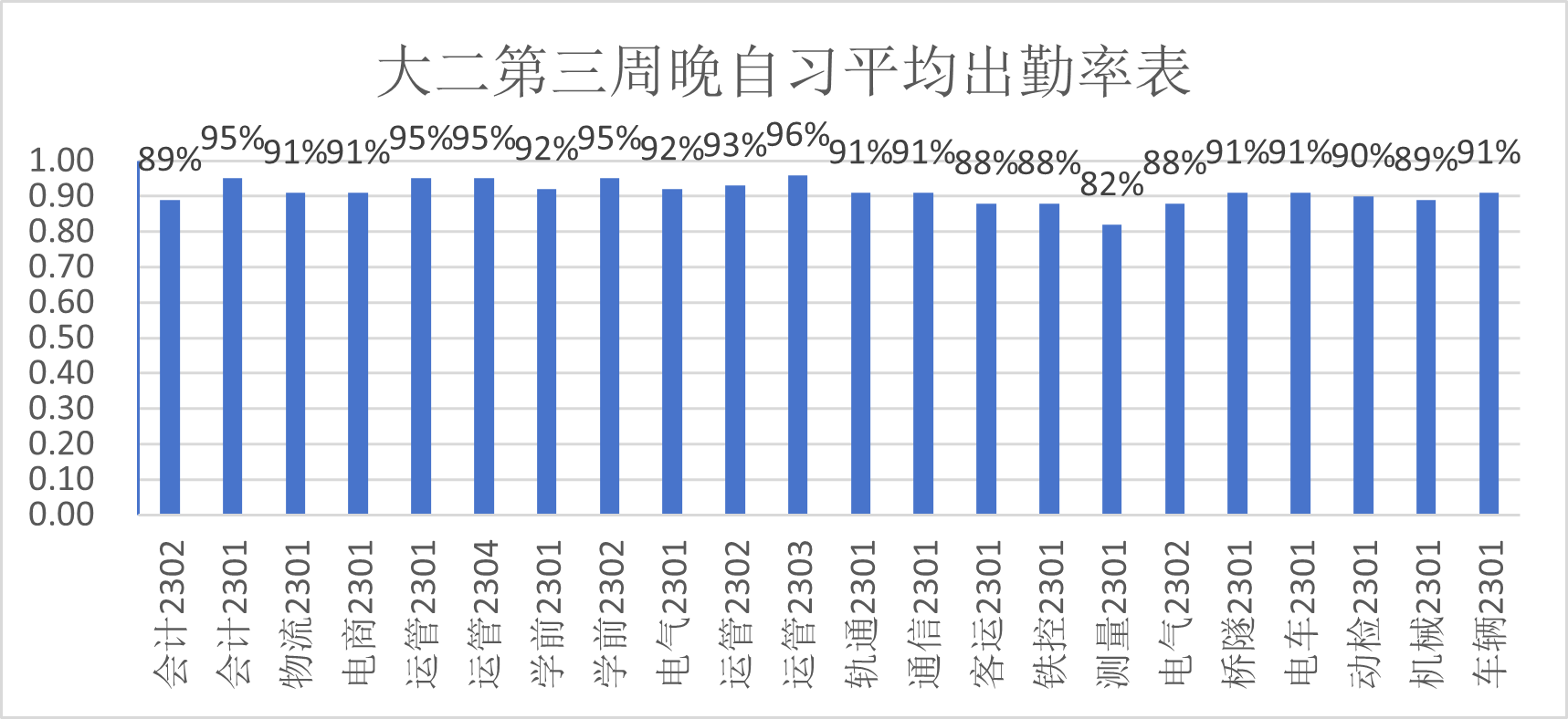 大二第三周晚自习平均出勤率表