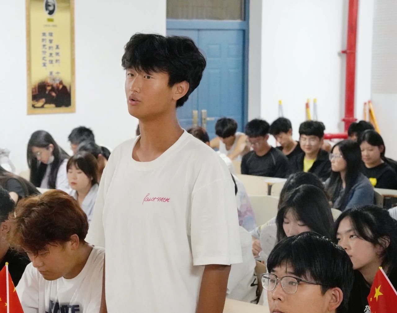 团课伊始雷正吉同学从爱国奋斗是新时代的主旋律、爱国奋斗精神的现实意义、如何践行爱国奋斗精神、做爱国奋斗精神的践行者四个部分进行讲解。他带领全体团员回顾新中国成立以来的光辉历程,通过一幅幅珍贵的历史照片和一段段感人的视频,以生动的语言和丰富的案例,深入阐述砥砺奋进的重要意义和青年担当的时代责任。他鼓励青年团员们要坚定理想信念,勇于担当作为,在新时代的征程中展现青春风采。