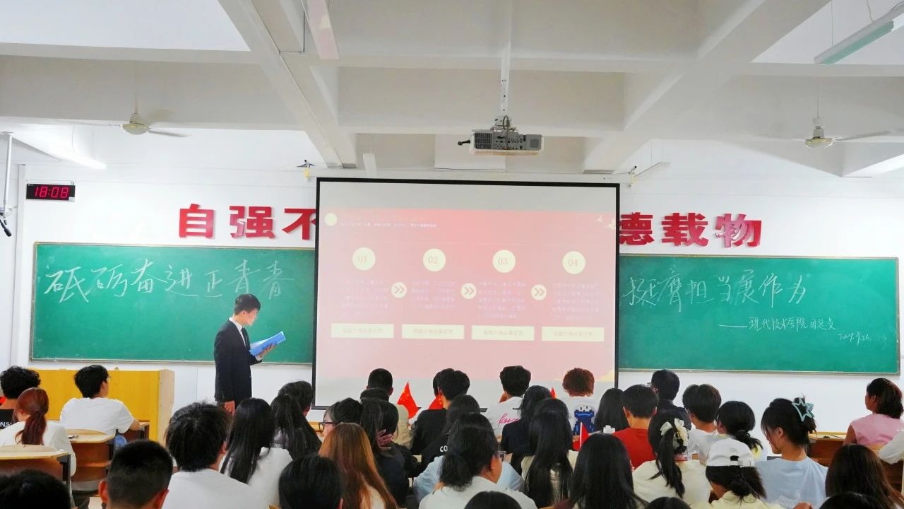 为激发广大团员青年的爱国热情和奋斗精神,增强学生的民族自豪感和责任感,鼓励大家在学习、工作和生活中,积极践行社会主义核心价值观,勇于创新、敢于拼搏,为实现中华民族伟大复兴的中国梦贡献自己的青春力量。9月26日伟德国际victor·1946源自团总支于5-202教室开展“砥砺奋进正青春,挺膺担当展作为”主题团课,我院全体团干部及团员青年学生参加,本次团课由雷正吉同学主持。