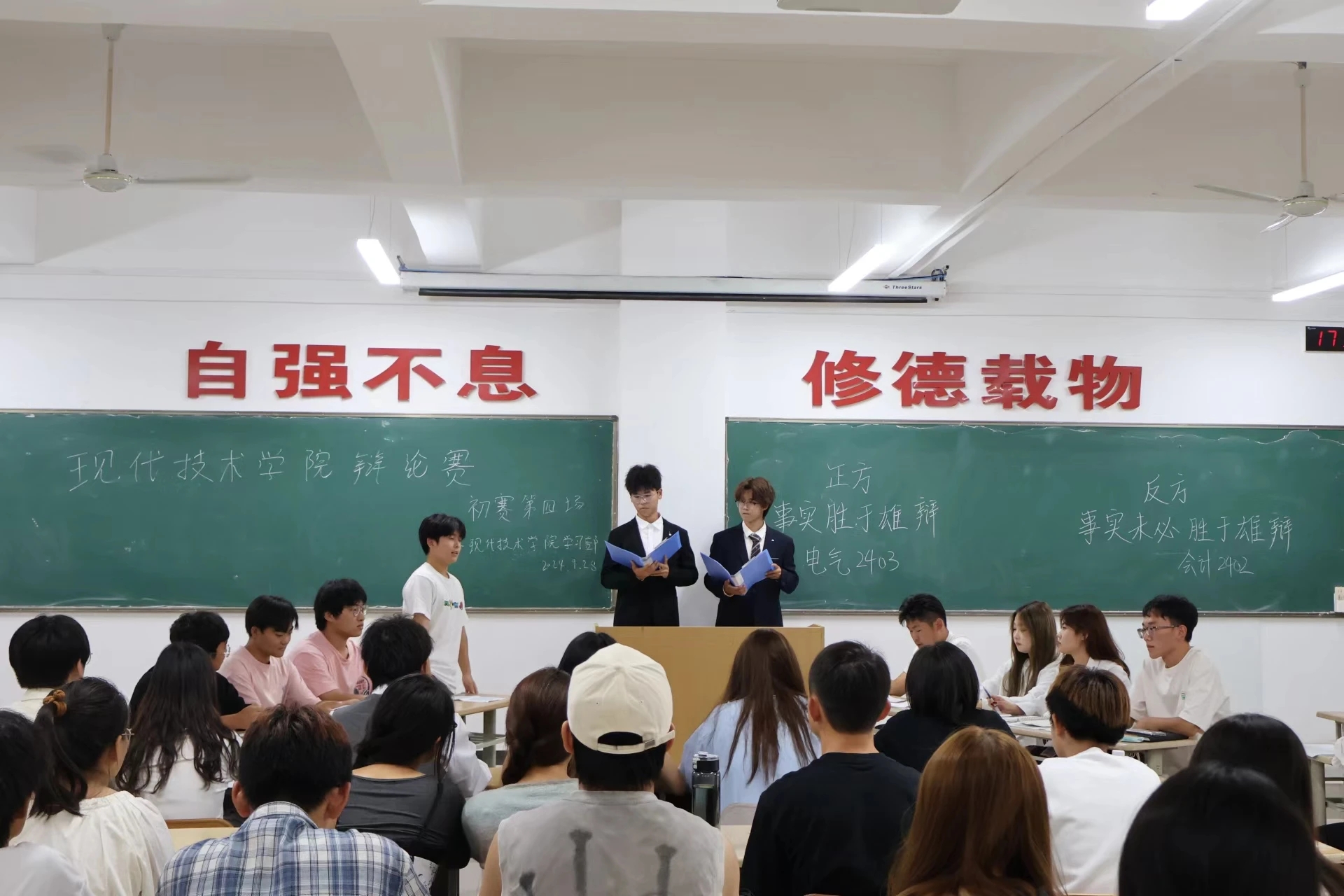 初赛现场气氛热烈,来自不同专业的四支参赛队伍围绕热点话题展开了激烈的辩论。在“事实是否胜于雄辩”这一辩题中,正反双方选手各抒己见。正方认为调事实是客观存在且不可更改的,无论言辞多么华丽,雄辩多么巧妙,最终都要以事实为依据。从而说明事实具有不可撼动的力量,胜于雄辩。反方则提出雄辩并非单纯的巧言令色,而是一种能够对事实进行合理阐释、引导认知的能力。他们指出,在信息爆炸的时代,同样的事实可能因不同的表述和解读而产生不同的影响。双方选手在立论、攻辩、自由辩论和总结陈词等环节中,思路清晰、逻辑严密,引经据典、妙语连珠,赢得了现场观众的阵阵掌声。