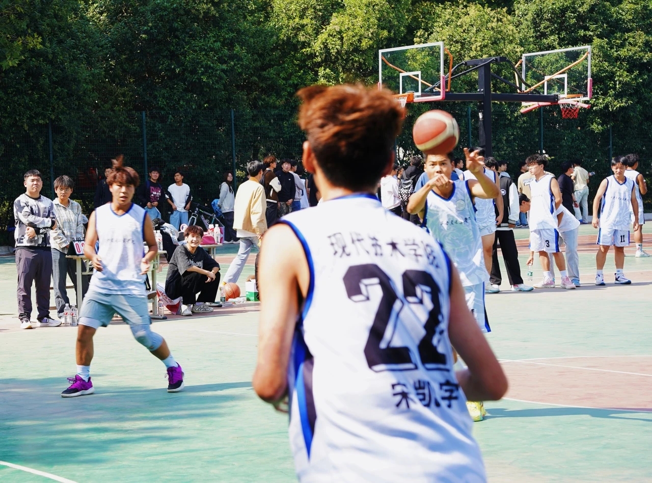 比赛进行得如火如荼,现场气氛十分热烈。观众们的加油声、呐喊声此起彼伏,他们为自己支持的球队欢呼助威,仿佛自己也置身于这场激烈的比赛之中。球员们在观众的鼓舞下,更加奋力拼搏,每一个精彩的瞬间都赢得了现场观众的阵阵掌声。双方队员都展现出良好的体育道德风尚。他们尊重裁判,尊重对手,即使在激烈的对抗中也没有出现任何不文明的行为。这种精神不仅体现了大学生的良好素质,也为这场比赛增添一抹亮丽的色彩。
