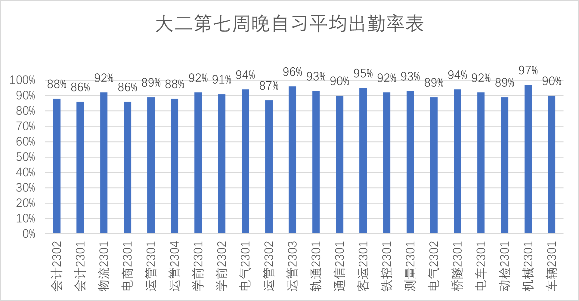 大二第七周晚自习平均出勤率表