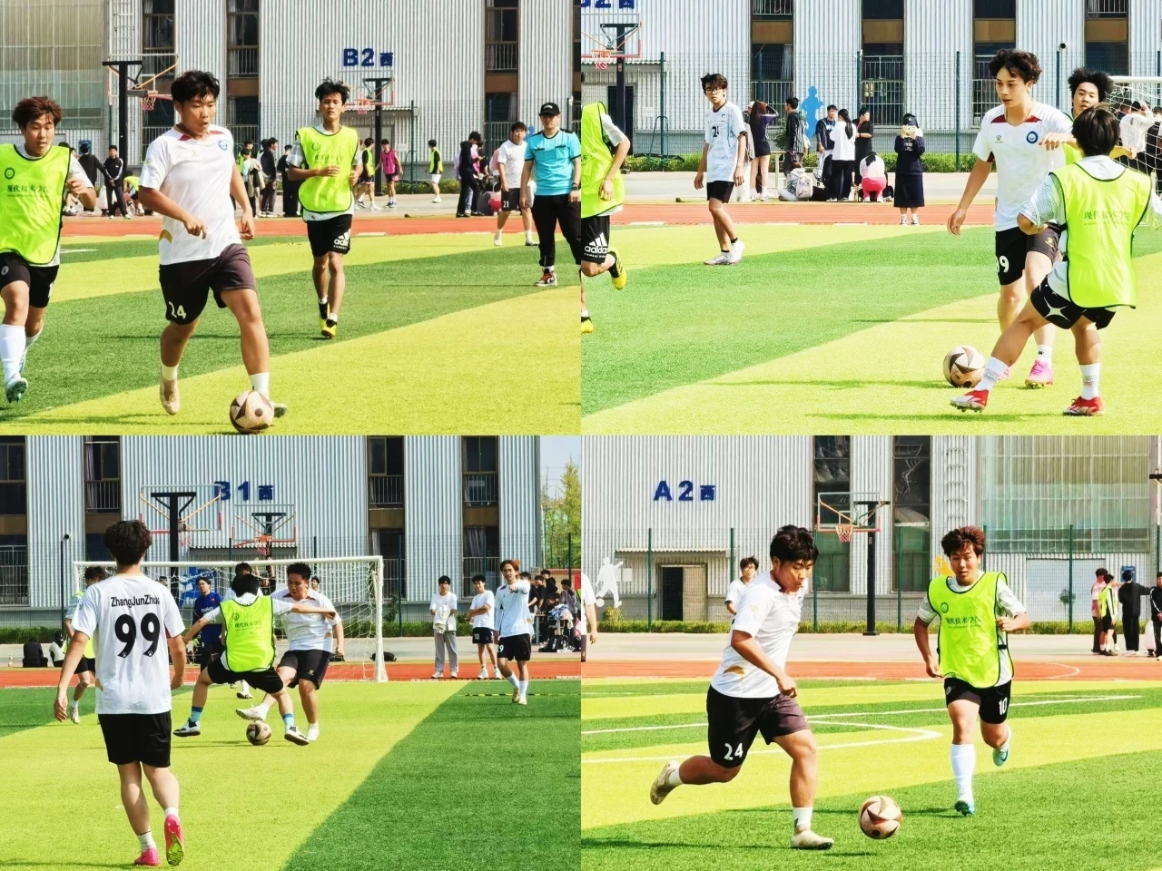 比赛正式开始。两支参赛队伍迅速进入状态,球员们在绿茵场上尽情奔跑、挥洒汗水。他们个个斗志昂扬,你争我夺,毫不示弱。一次次精彩的传球、射门,让现场观众们热血沸腾。比赛中,双方队员都展现出了顽强的拼搏精神和高超的球技。进攻队员们配合默契,不断冲击对方防线;防守队员们则全神贯注,严密防守,不给对手任何可乘之机。足球在队员们的脚下飞速传递,仿佛有了生命一般。