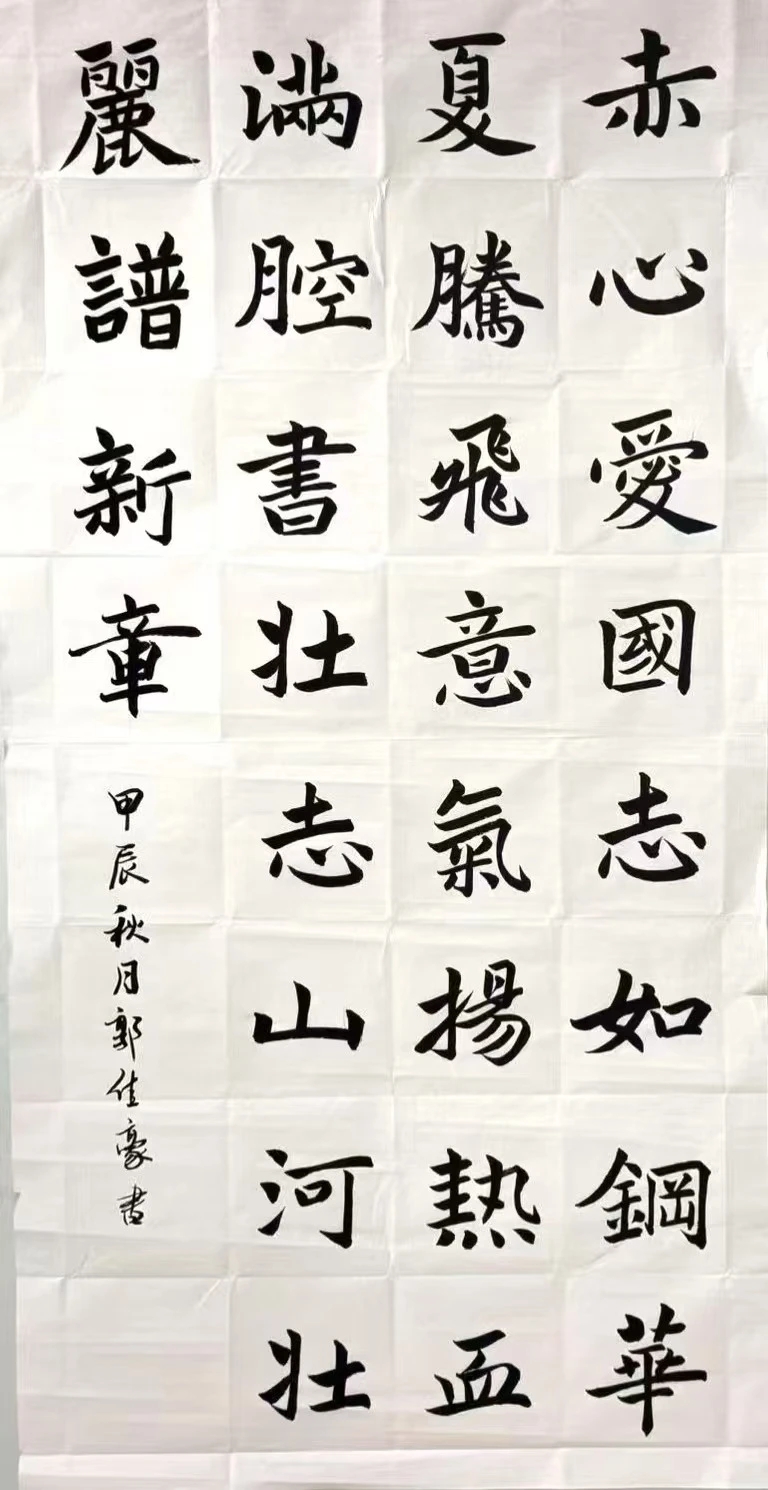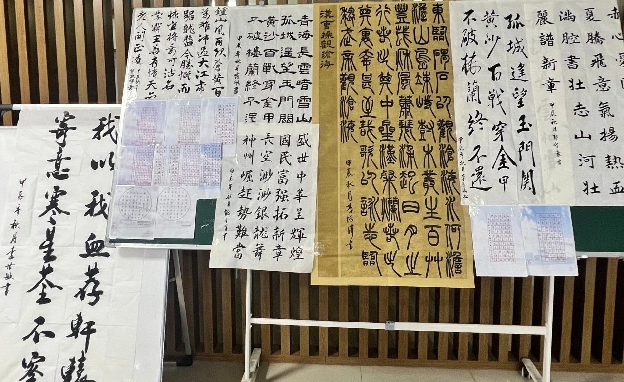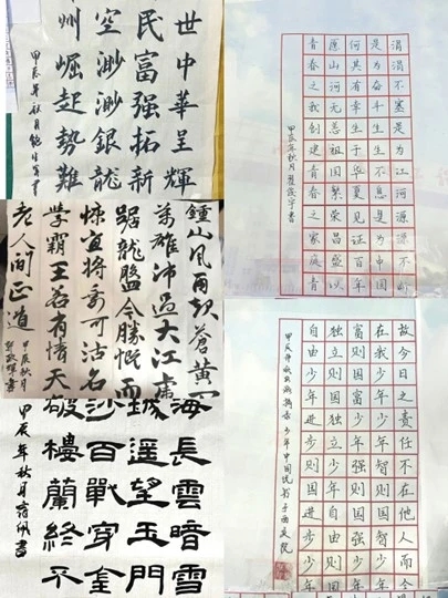 参赛者们围绕主题,热情高涨的挥毫泼墨,各展所长,作品形式多样、内容丰富,既有楷书、行书等传统字体的精彩演绎,也不乏融入现代创意的新颖尝试。通过书写爱国诗词、名言警句等,同学们更加深刻地体会到祖国的伟大和自己肩负的历史使命。每一幅作品都凝聚着作者对于中华文化精髓的理解以及对国家繁荣昌盛的美好祝愿,展现他们精湛的书法技艺和深厚的文化底蕴。