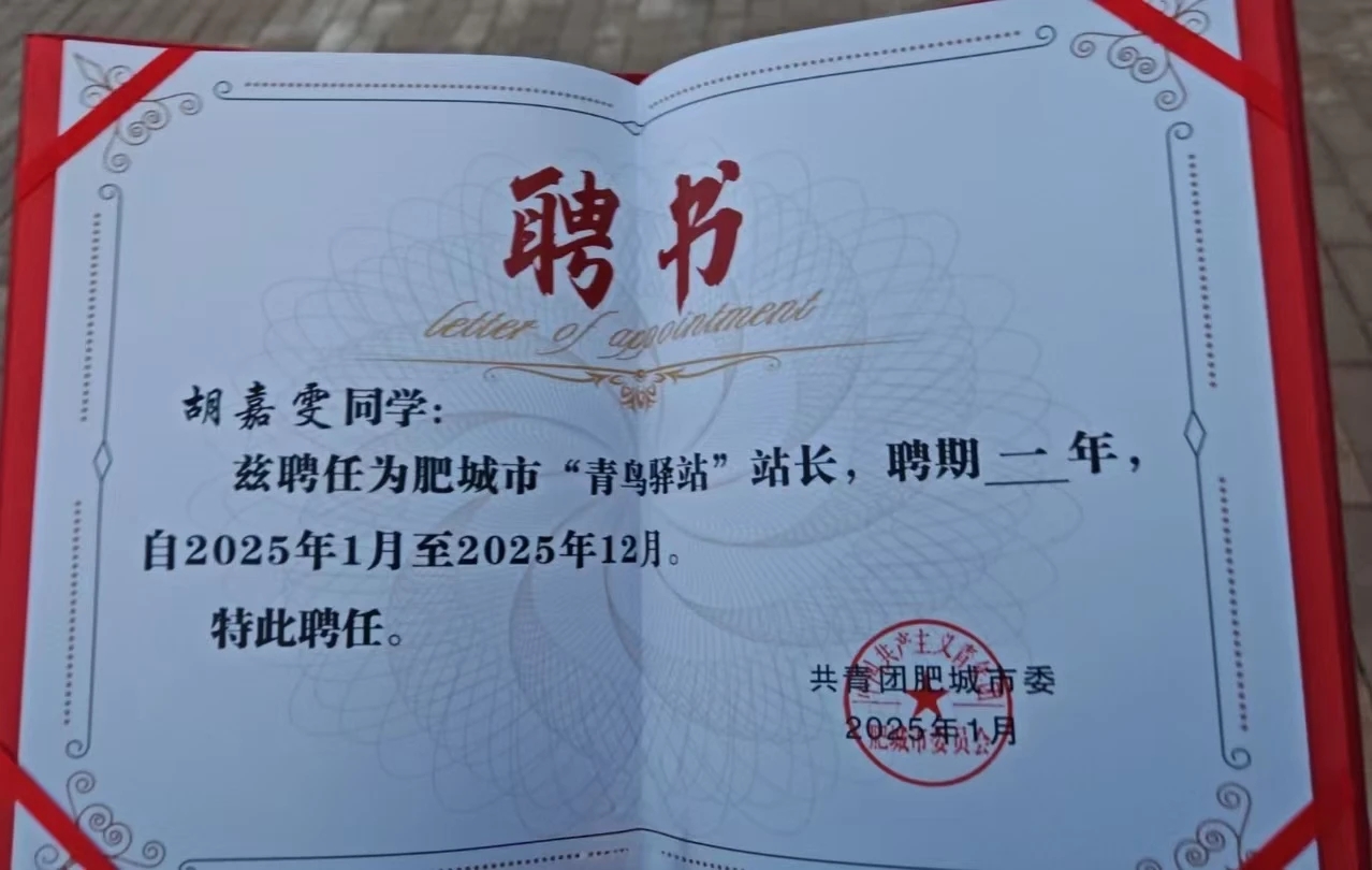 寒假“返家乡”成员胡嘉雯同学回到家乡,在共青团山东省委与人社厅共推的“青鸟计划”助力下,满怀热忱加入肥城市图书馆志愿服务队,积极投身志愿服务,用实际行动诠释青春担当。其间,她扎根知识服务一线,凭努力与才华脱颖而出,成功竞聘青鸟驿站站长,于青春征途留下深刻印记,向着未来振翅启航。