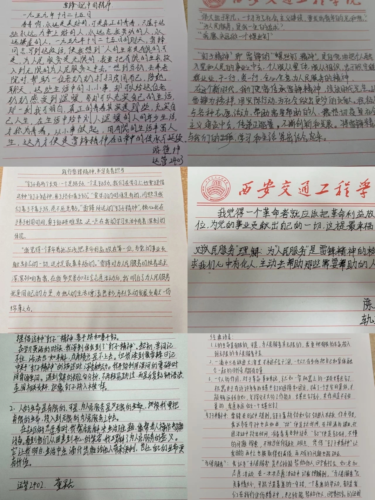 在学习过程中,现场氛围十分活跃,部分同学还主动摘抄了雷锋日记中的经典语录,并结合自身经历分享了对“钉子精神”“为人民服务”等关键词的理解。在学习专业知识时,我们要像雷锋的“钉子精神”那样,善于挤时间、刻苦钻研,在日常生活中,要从点滴小事做起,积极为同学、为老师、为社区群众服务,以实际行动践行“为人民服务”的宗旨。通过此次主题团日活动,同学们深刻地认识到了雷锋精神的重要性和时代意义,他们将积极响应习近平总书记的号召,让雷锋精神内化于心、外化于行,把个人理想融入到志愿服务、专业学习、社会实践中,争做新时代雷锋精神的传承者和践行者。