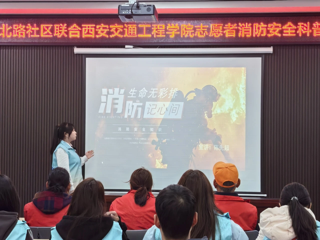 活动伊始,由志愿者代表陈先超同学为社区居民进行消防安全知识宣讲。通过PPT详细讲解了火灾的危害性、防火的基本知识、灭火器的使用方法以及火灾逃生的技巧,结合真实案例,细致入微的地分析了火灾发生的原因及预防措施,帮助居民们更好地理解消防安全的重要性。宣讲过程中,社区人员和同学们认真聆听,积极参与互动,现场气氛热烈。