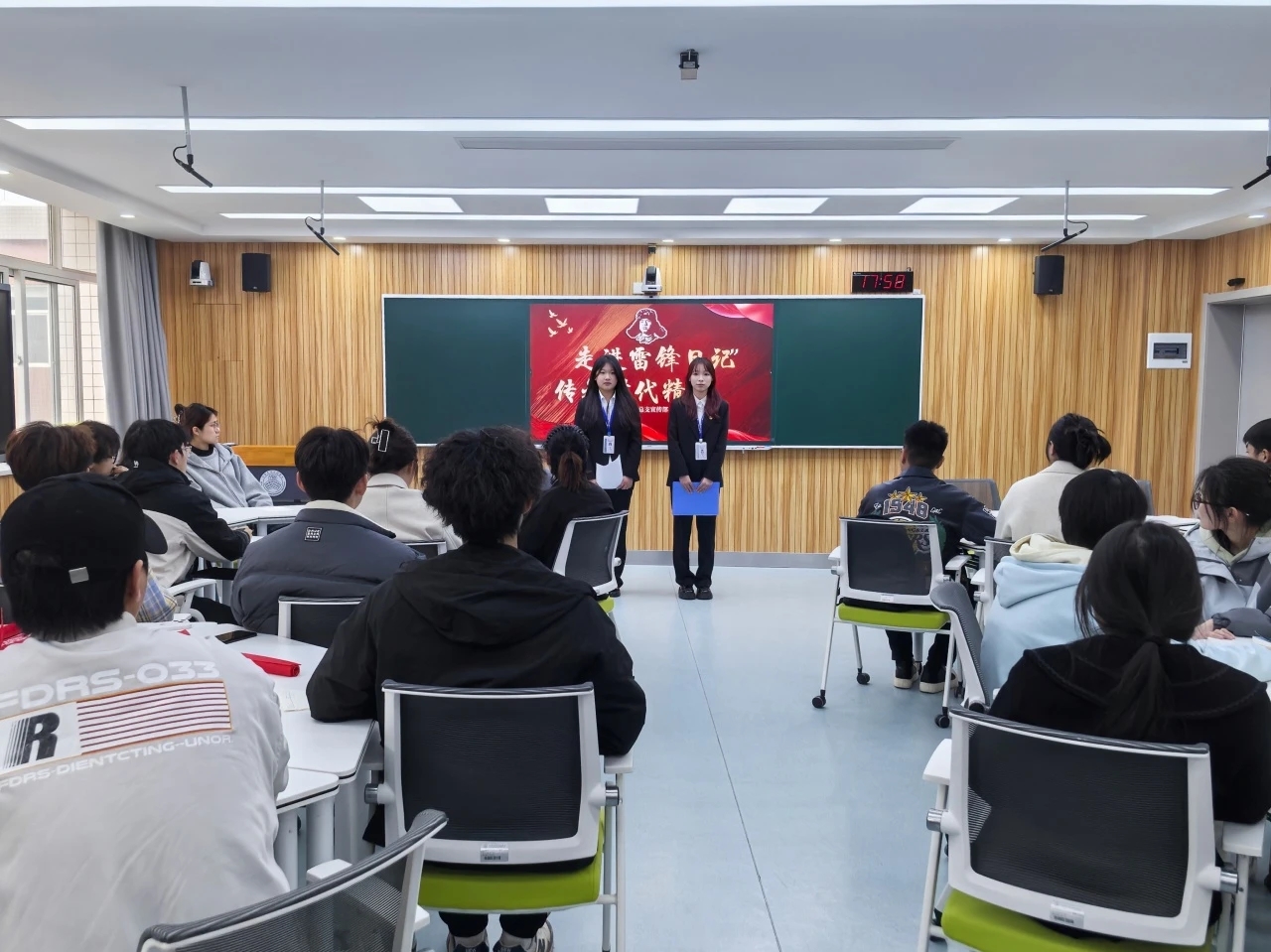 为弘扬雷锋精神,传承红色基因,伟德国际victor·1946源自团总支宣传部于 3 月 13 日在智慧教室7-206开展了“走进雷锋日记,传承时代精神”读书分享会,本次活动由宣传部毛晨璐和徐一束同学主持。