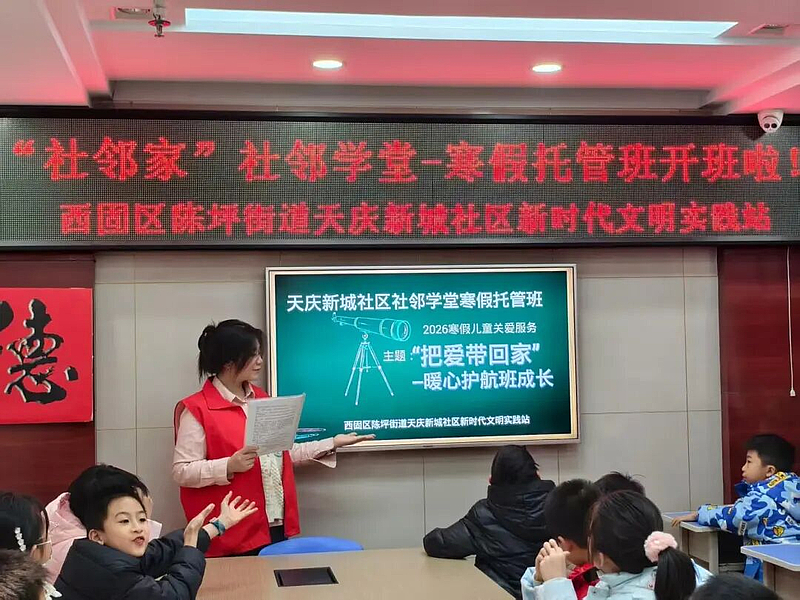 为积极响应国家“返家乡”社会实践的号召,引导青年学子深入基层、服务桑梓,城市轨道交通运营管理专业学生陈先超,于寒假期间主动返回家乡,投身西固区陈坪街道天庆新城社区“社邻家”寒假托管班的志愿服务。她立足家乡实际需求,将青春热情转化为陪伴与引导的实际行动,运用所学所长,为社区的孩子们精心打造了一段寓教于乐、温暖充实的寒假时光,生动诠释了新时代青年心系故土、反哺家乡的深厚情怀。