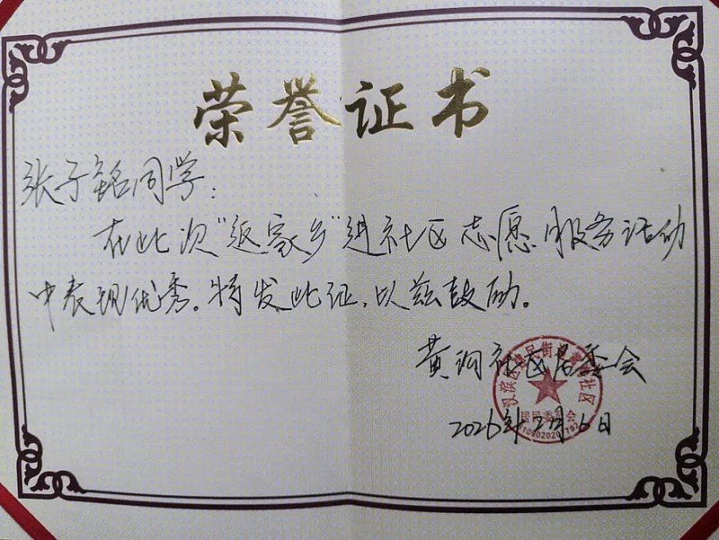 青春逢盛世,奋斗正当时。此次社会实践,张子铭以实干践行初心,以担当书写青春,用汗水与努力诠释了当代青年的责任与使命。这段宝贵的实践经历,不仅为他的人生增添了浓墨重彩的一笔,更让他收获了成长与感悟。相信在未来的道路上,张子铭将继续脚踏实地、奋勇前行,把实践中的收获转化为前行的动力,在更广阔的天地绽放青春光彩,以实际行动为家乡发展、社区和谐进步贡献更多青年力量,在服务人民、奉献社会中实现人生价值。