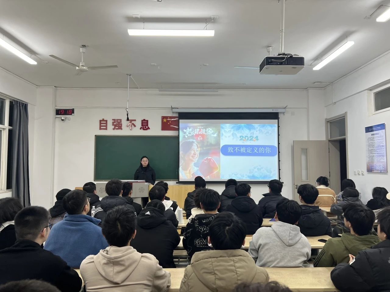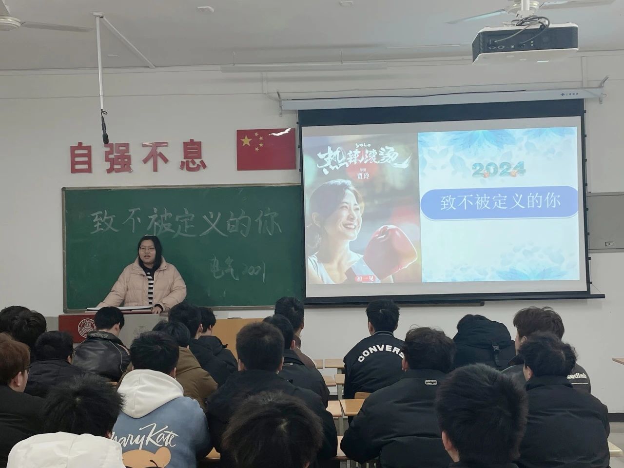 本次班会辅导员们以近期爆火的电影《热辣滚烫》为切入点,分别从围绕收心及健康习惯养成、思政教育、安全教育、心理健康教育、学风教育、禁烟教育等常规管理工作,结合学生的学业、理想信念、就业及升学目标,通过讲案例、学生分享等方式对学生进行指导教育。